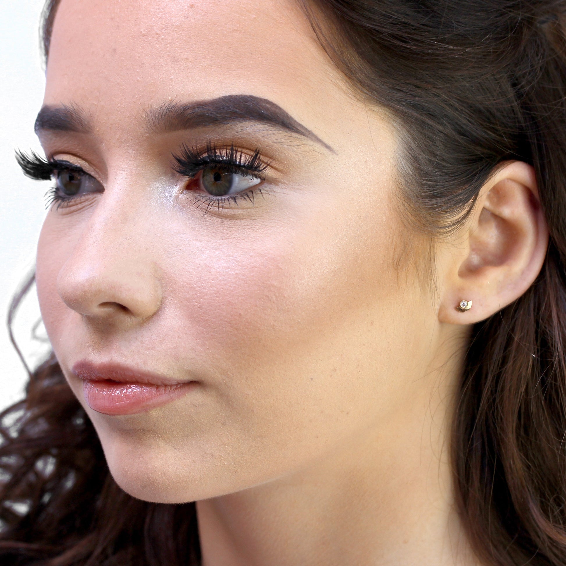 Boucles d'oreilles à tige en or 9 carats avec zircones cubiques transparents et demi-cercles minimalistes