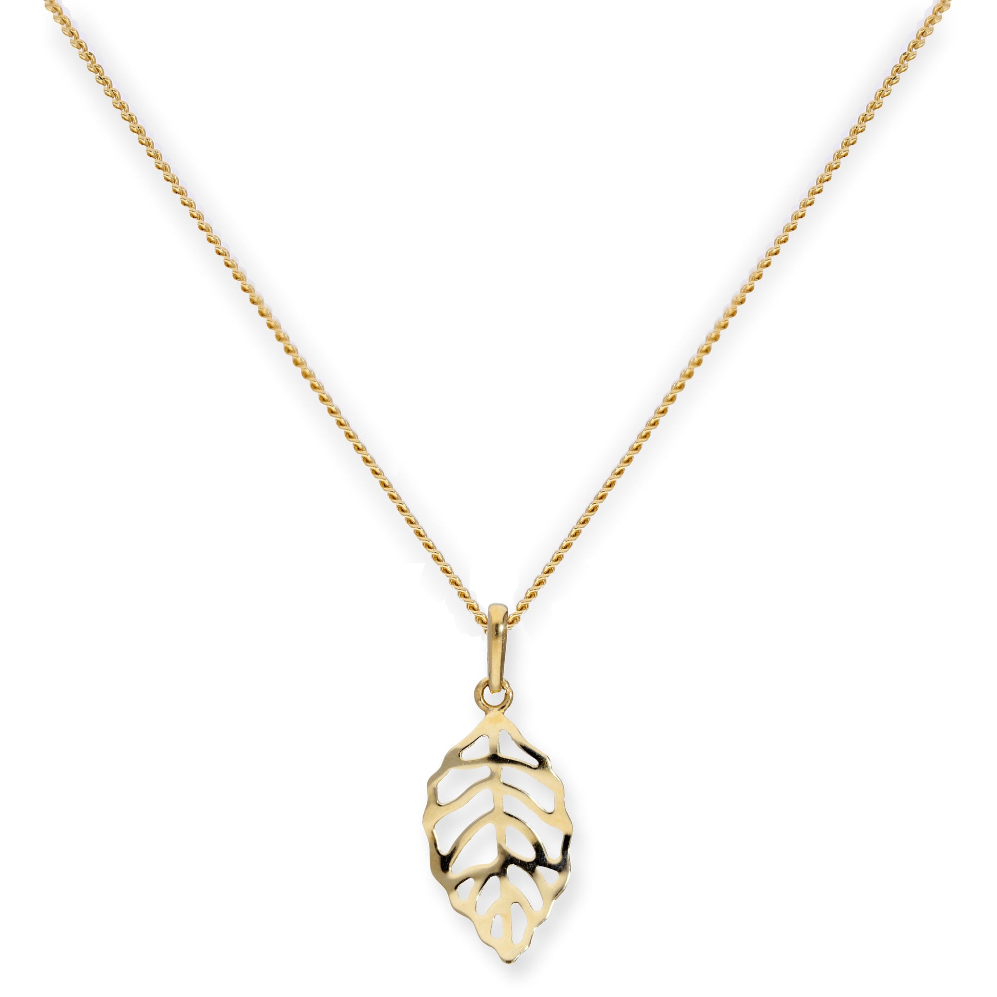 Collier pendentif feuille découpée en or 9 carats, 40 à 50 cm