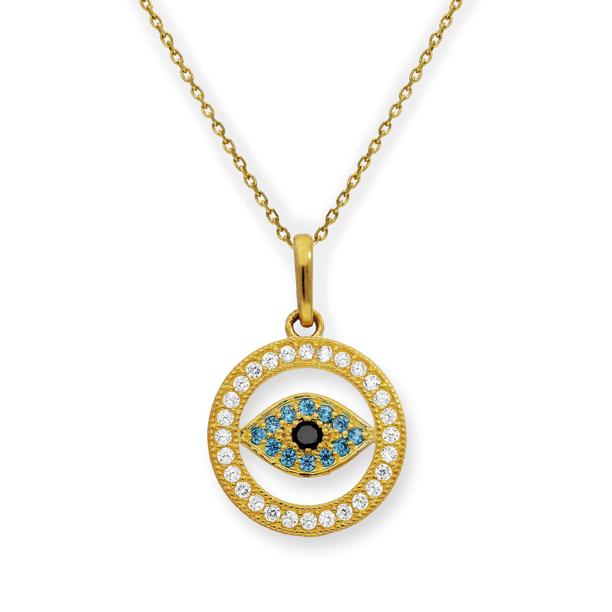 Collier avec pendentif cercle en or 9 carats et cristal CZ contre le mauvais œil
