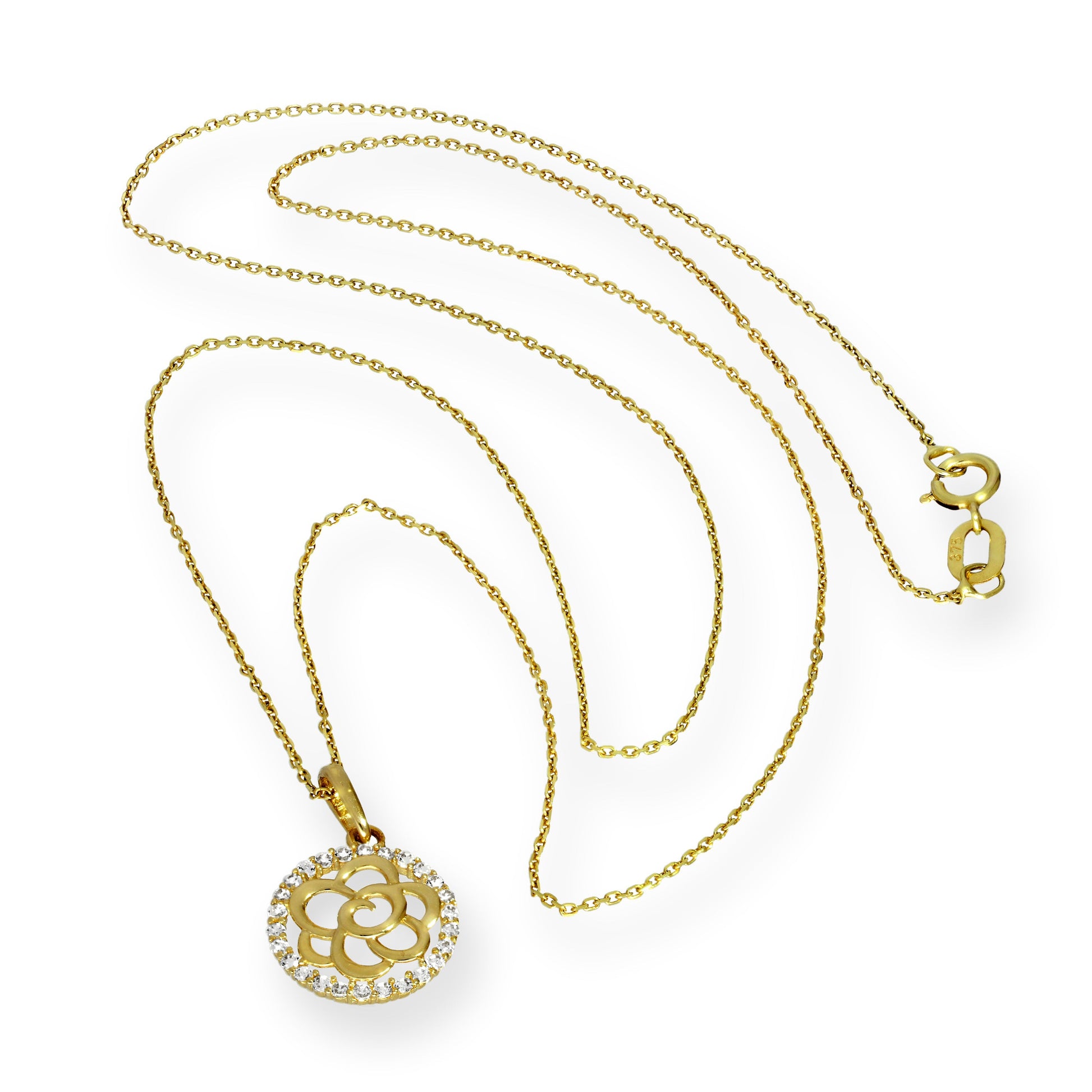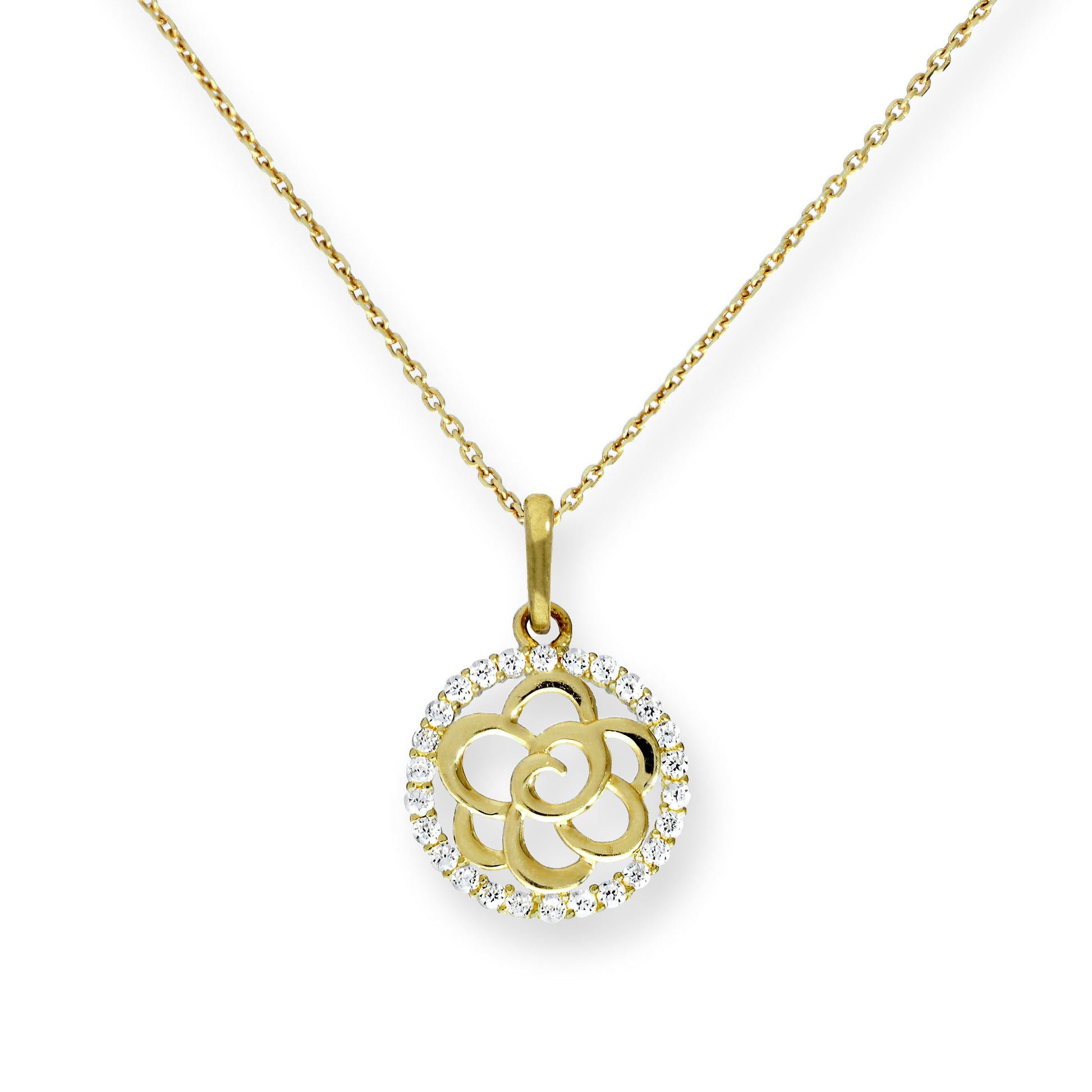Collier avec pendentif en forme de fleur ouverte en or 9 carats et cristal CZ, 40 à 50 cm