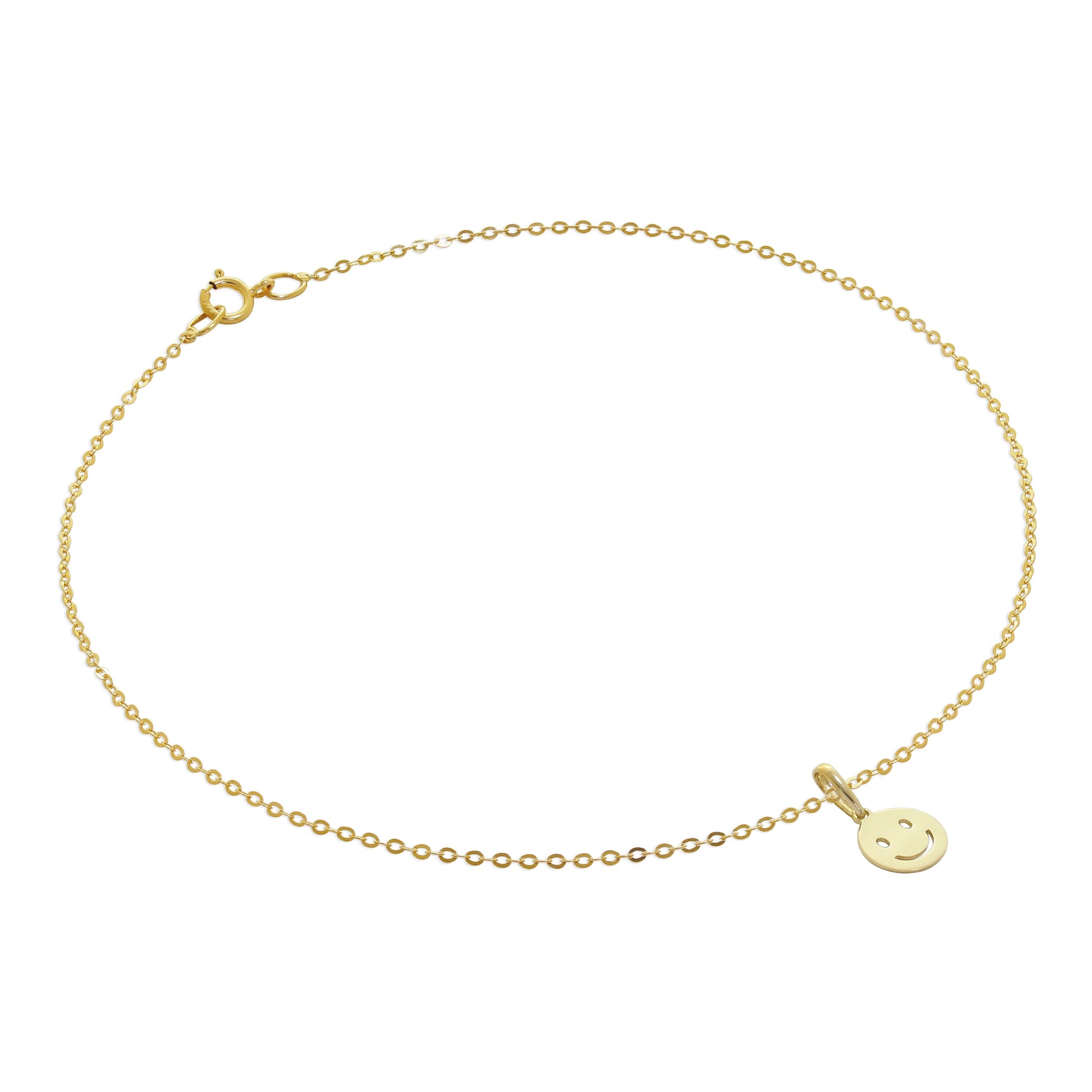 Bracelet de cheville martelé en or 9 carats avec breloque émoji visage souriant - 9,5 pouces