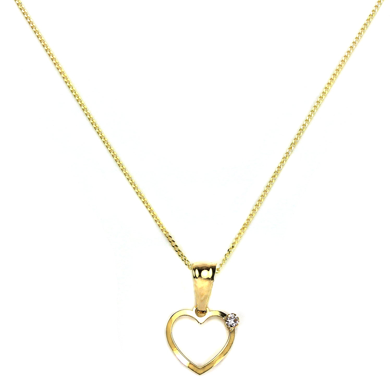 Pendentif en or 9 carats avec cœur ouvert et diamants