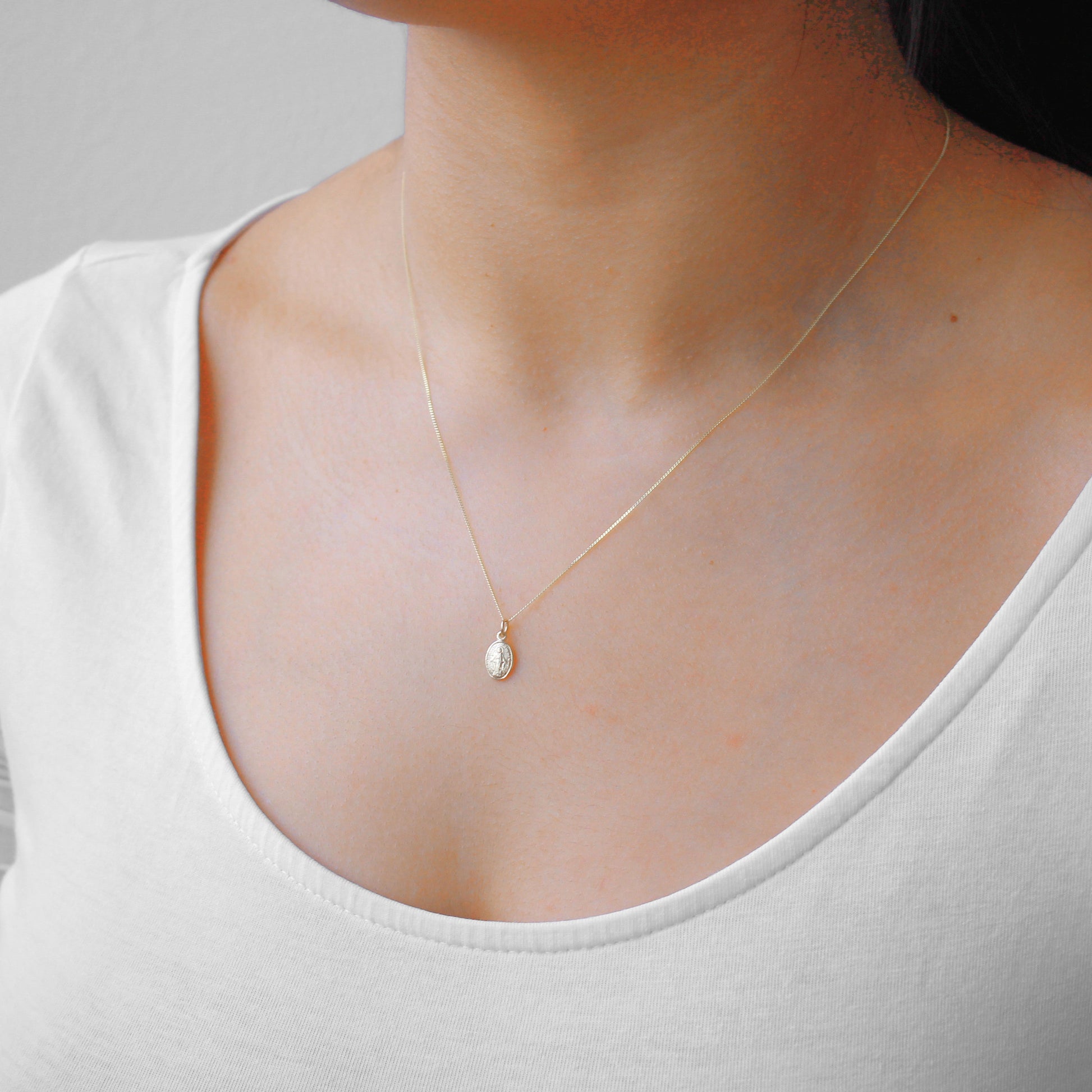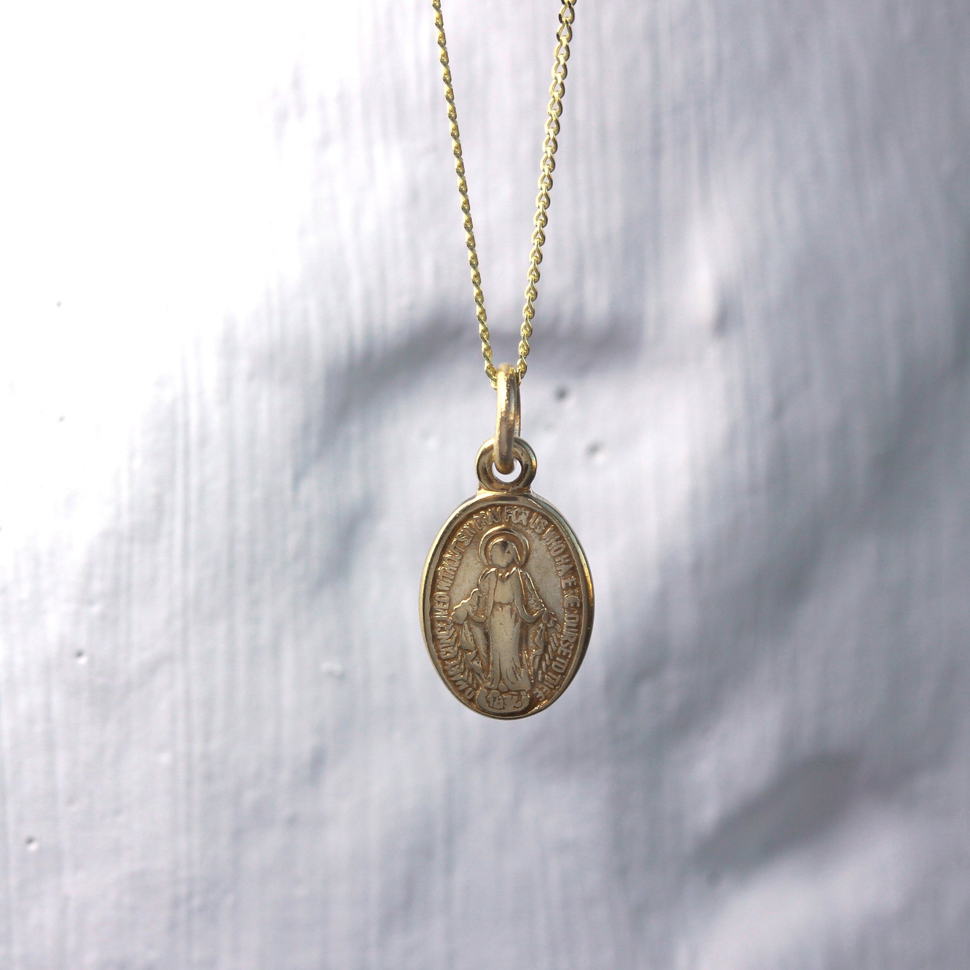 Collier en or 9 carats avec médaille de Marie miraculeuse