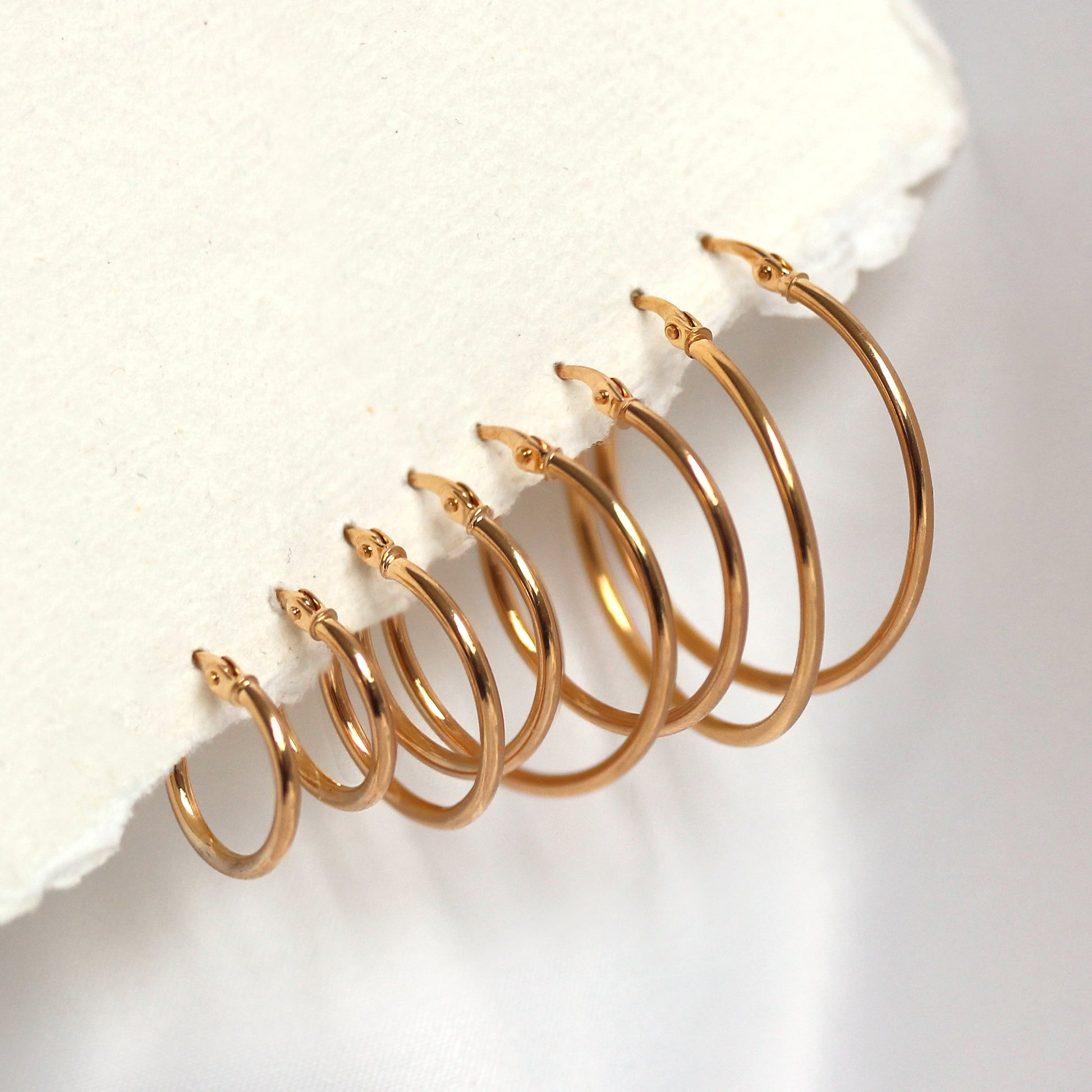 Boucles d'oreilles créoles à clipser en or 9 carats - 10 mm - 24 mm