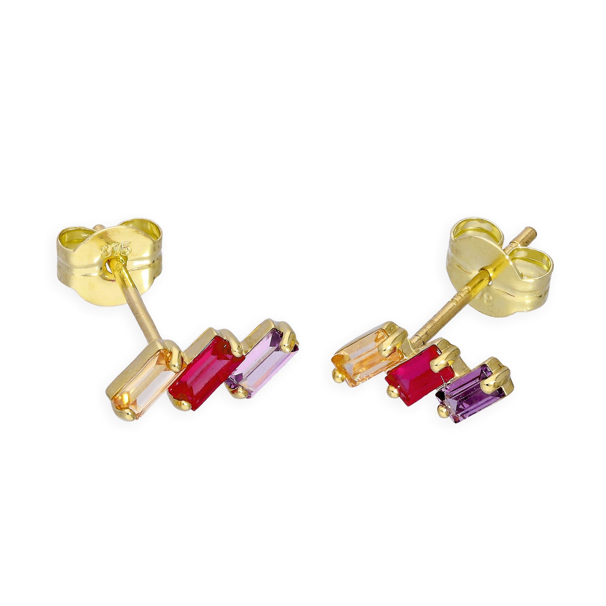 Boucles d'oreilles à tige en or 9 carats et cristaux CZ tricolores