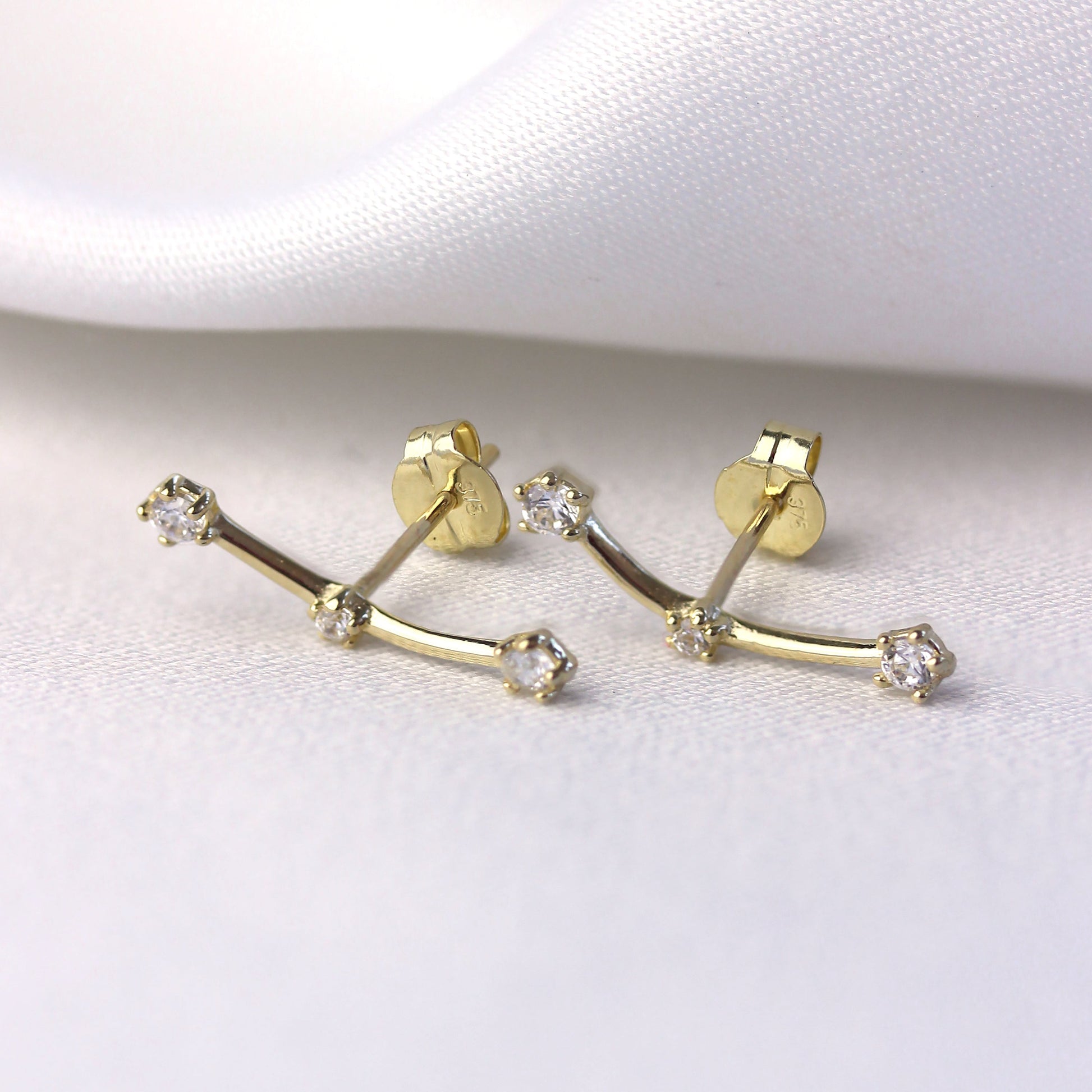 Boucles d'oreilles grimpantes à triple zircone cubique en or 9 carats