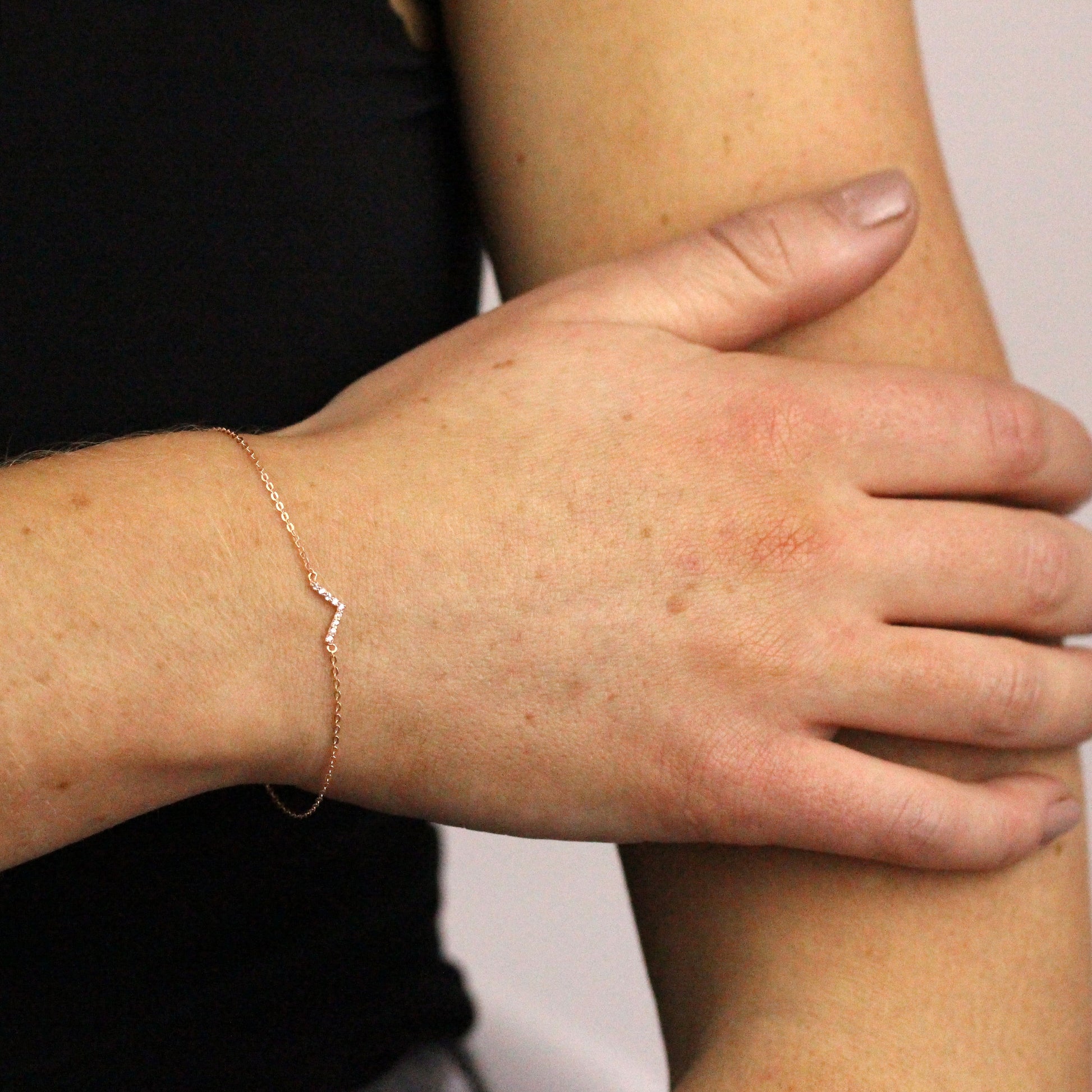 Bracelet lettre V en or rose 9 carats et cristal CZ transparent, 18 cm