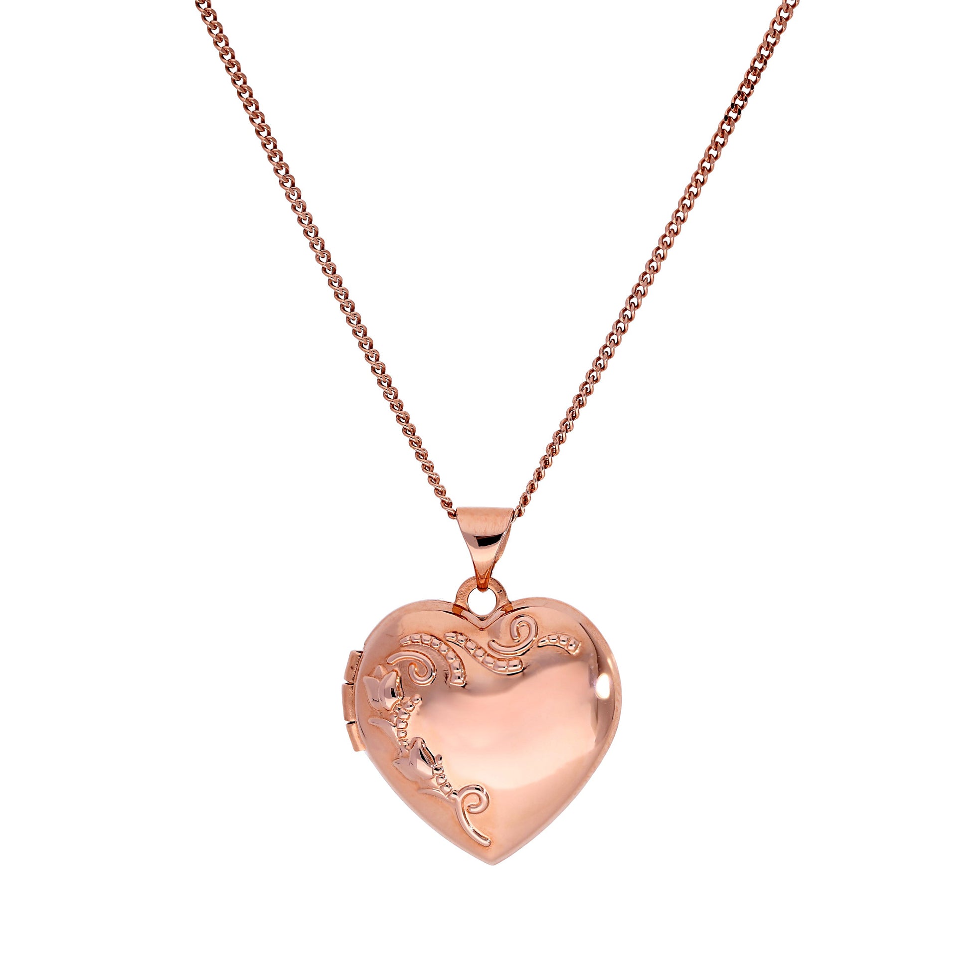 Médaillon cœur floral en or rose 9 carats sur chaîne de 40 à 50 cm