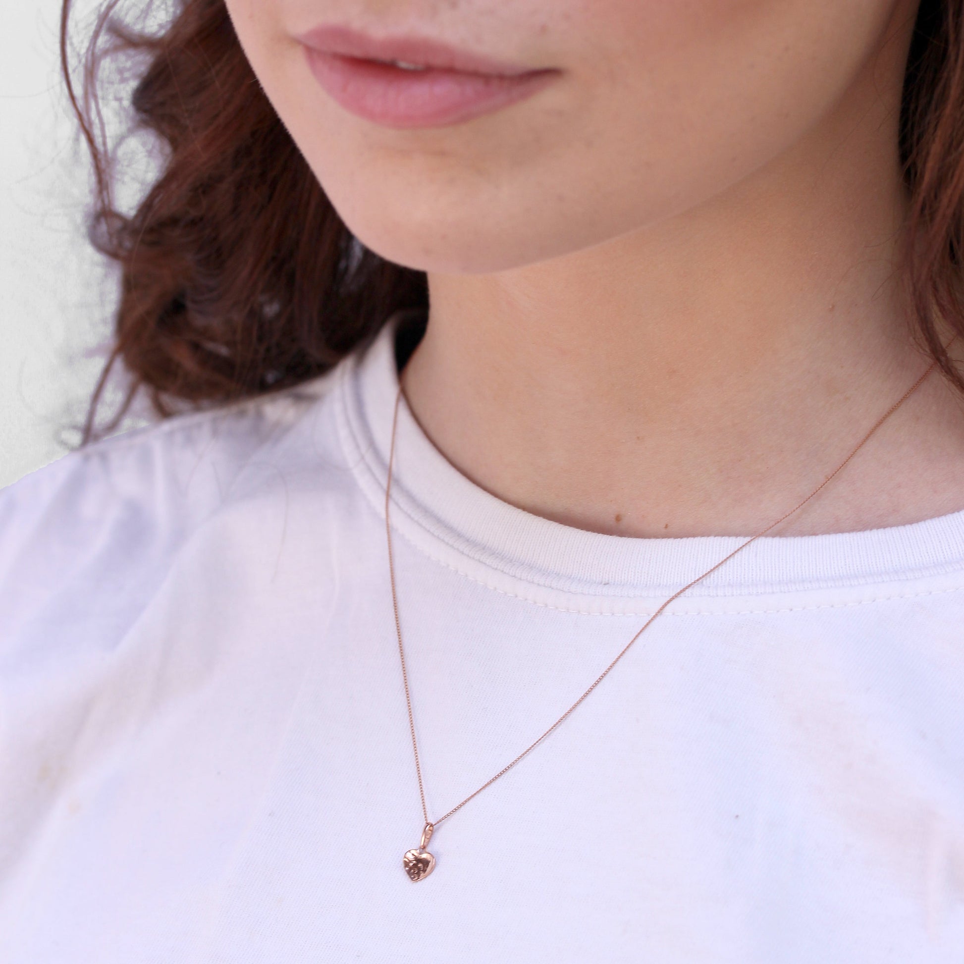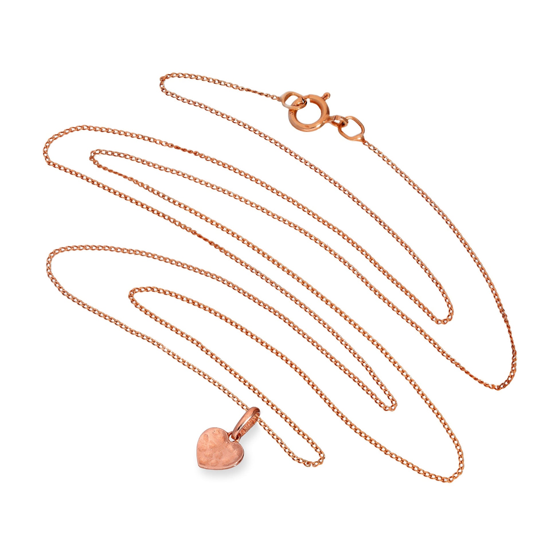 Collier avec pendentif en forme de cœur en or rose 9 carats avec finition martelée
