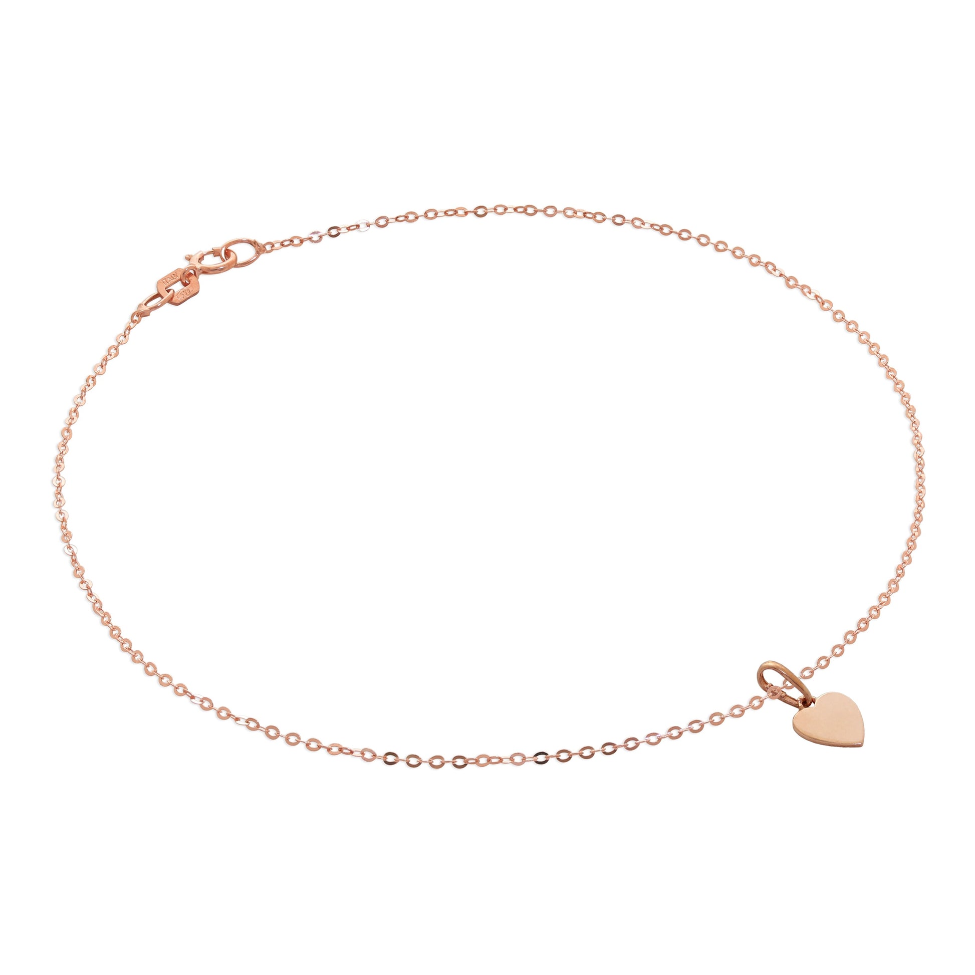 Bracelet de cheville en or rose 9 carats martelé avec breloque cœur gravable - 9,5 pouces