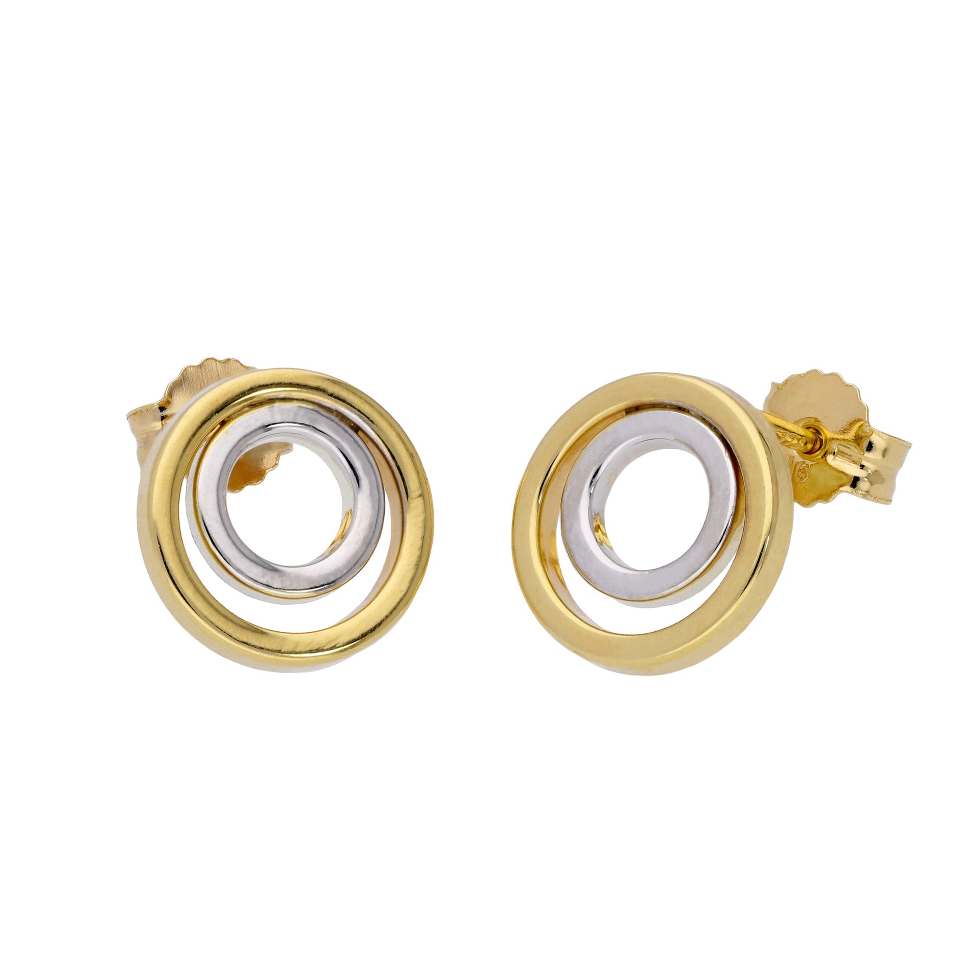 Boucles d'oreilles à double cercle en or jaune blanc bicolore 9 carats