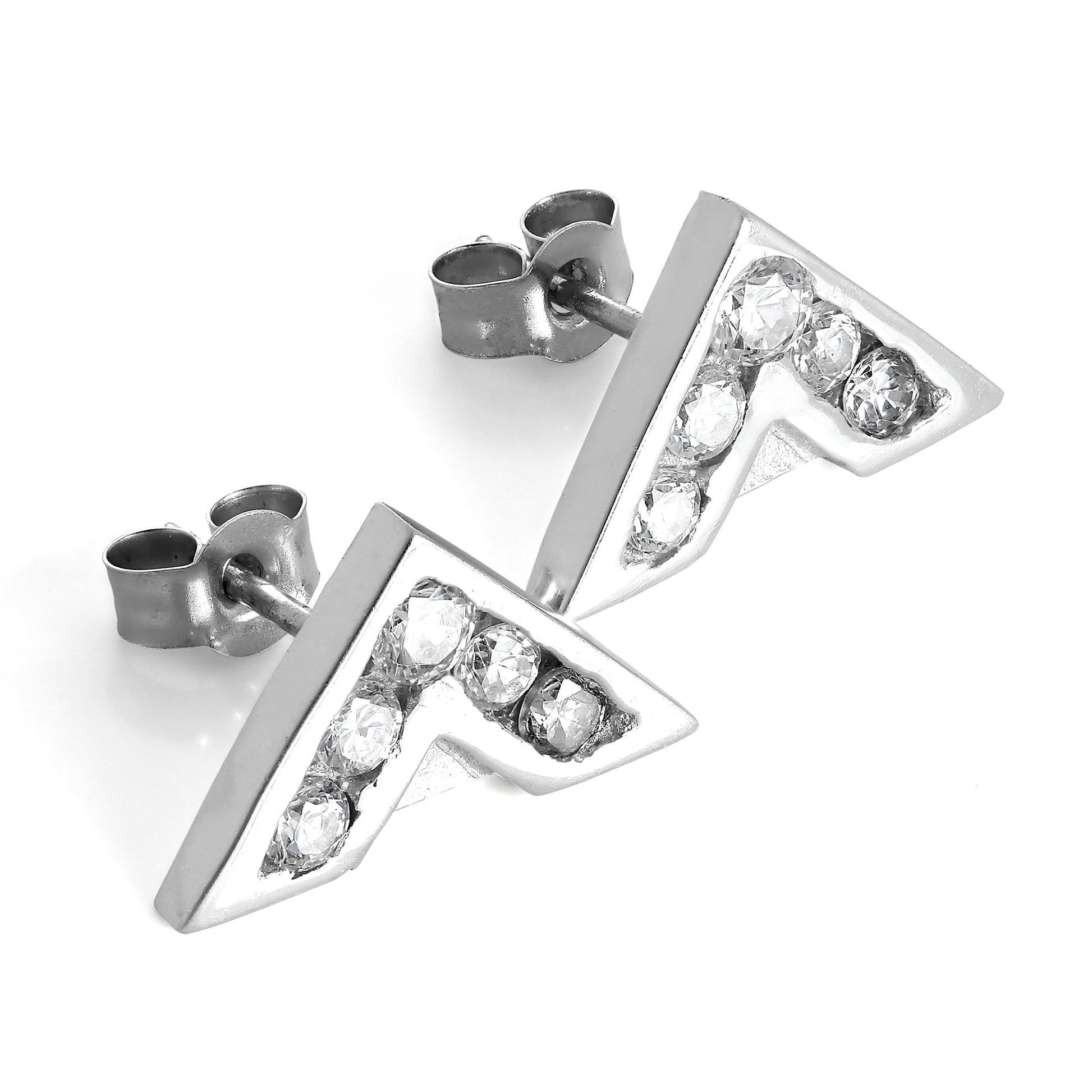 Boucles d'oreilles à tige en or blanc 9 carats et cristal CZ transparent en forme de V