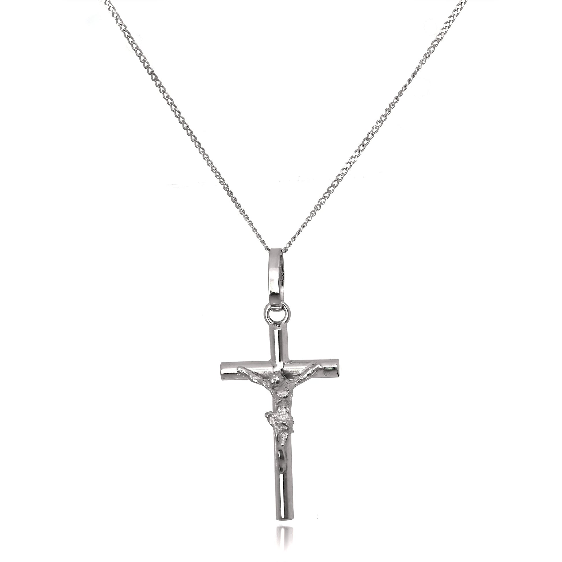 Pendentif crucifix en or blanc 9 carats sur chaîne de 40 à 50 cm