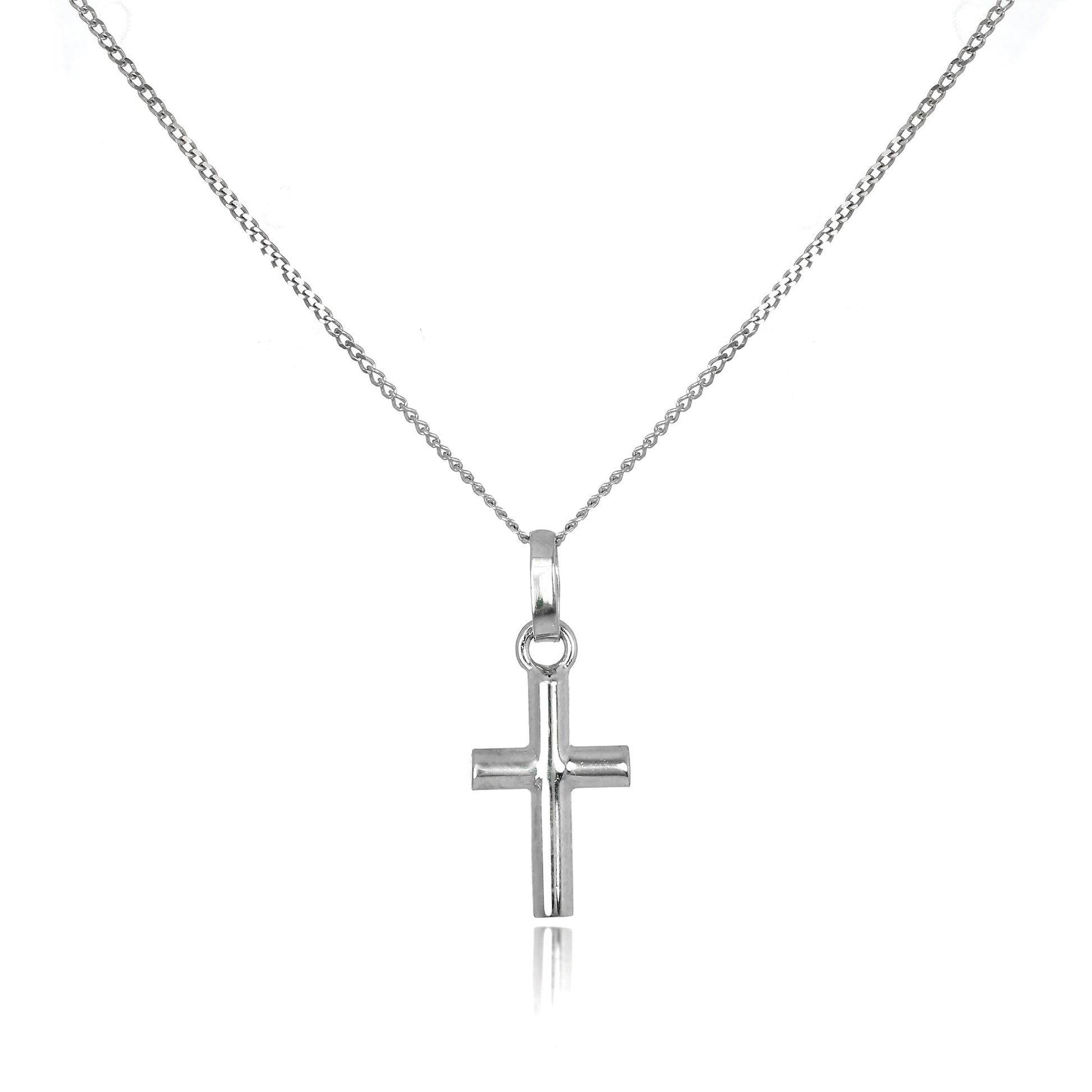 Pendentif petite croix en or blanc 9 carats sur chaîne de 40 à 50 cm
