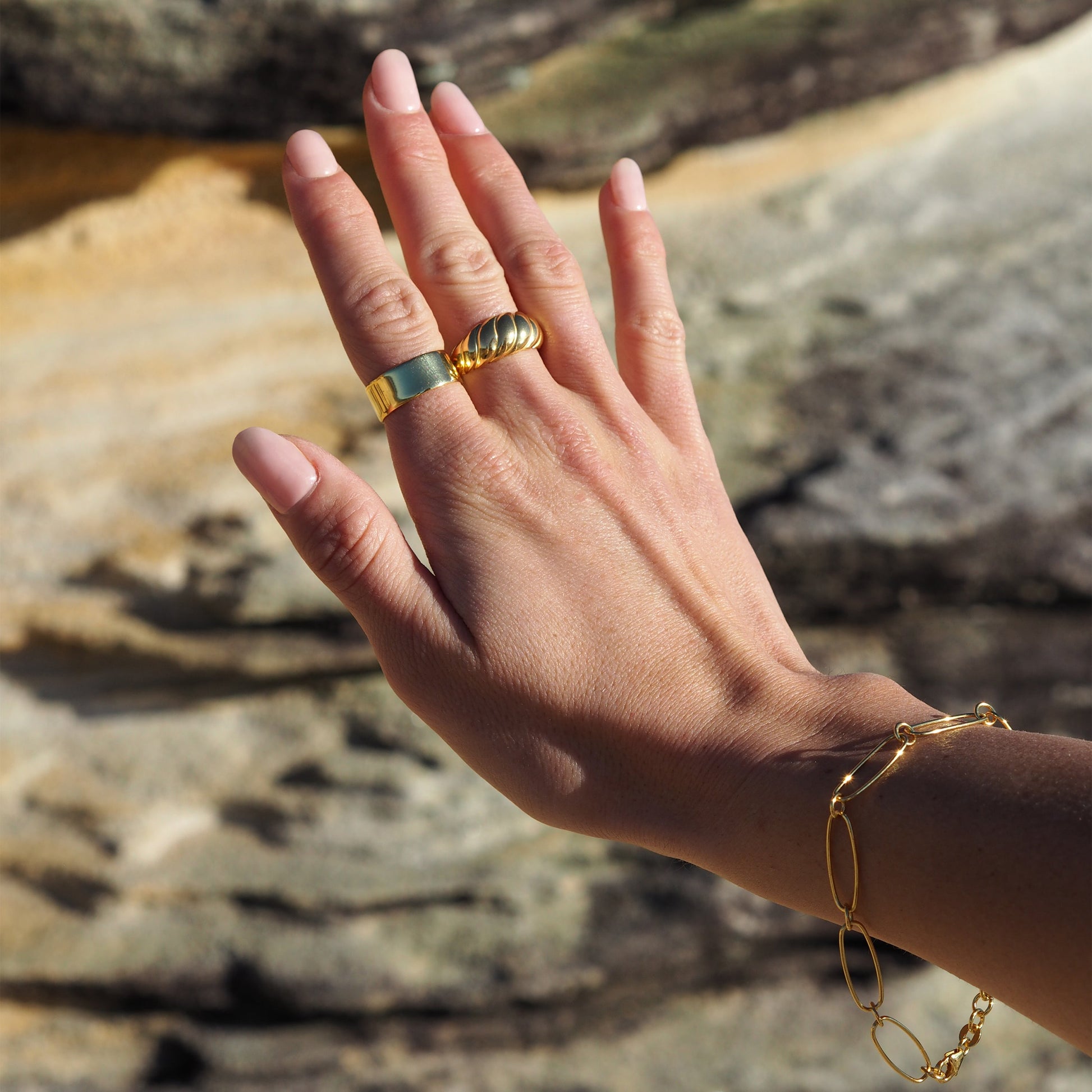 Bague ajustable en argent sterling plaqué or massif avec grosse corde torsadée