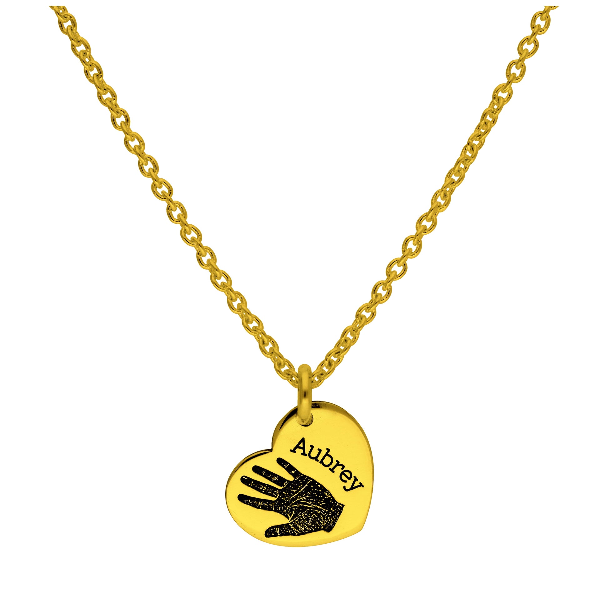Collier personnalisé en argent sterling plaqué or avec empreinte de main et nom en forme de cœur, 40 à 61 cm