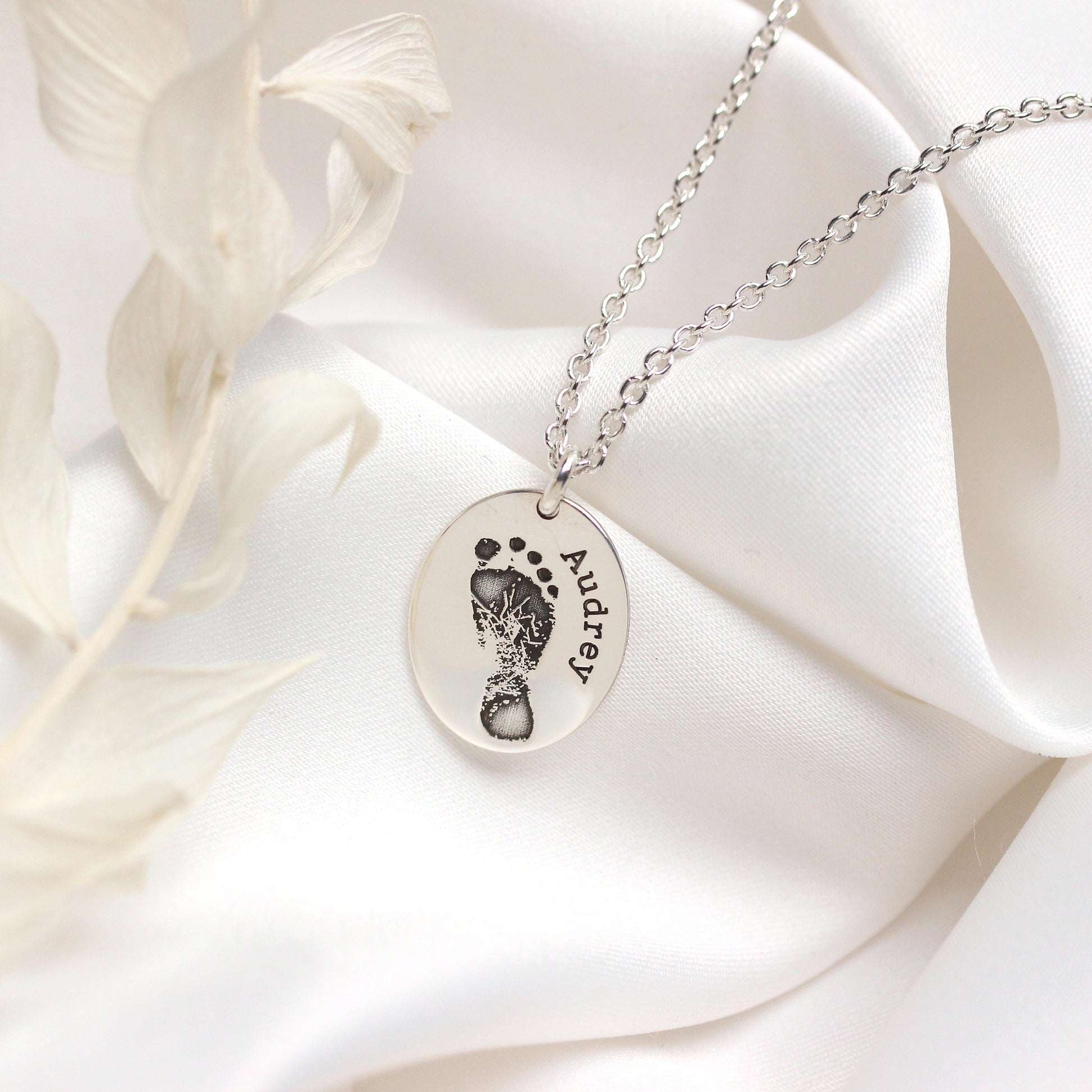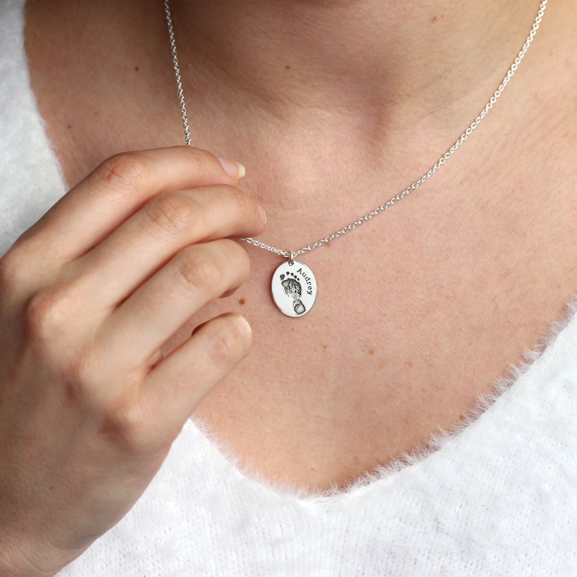 Collier ovale en argent sterling avec empreinte de pied, 40 à 61 cm