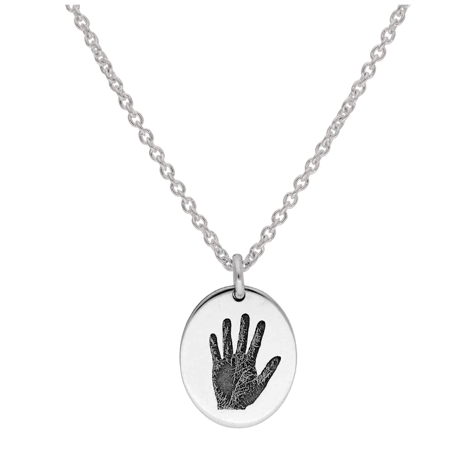 Collier ovale en argent sterling avec empreinte de main sur mesure de 40 à 61 cm