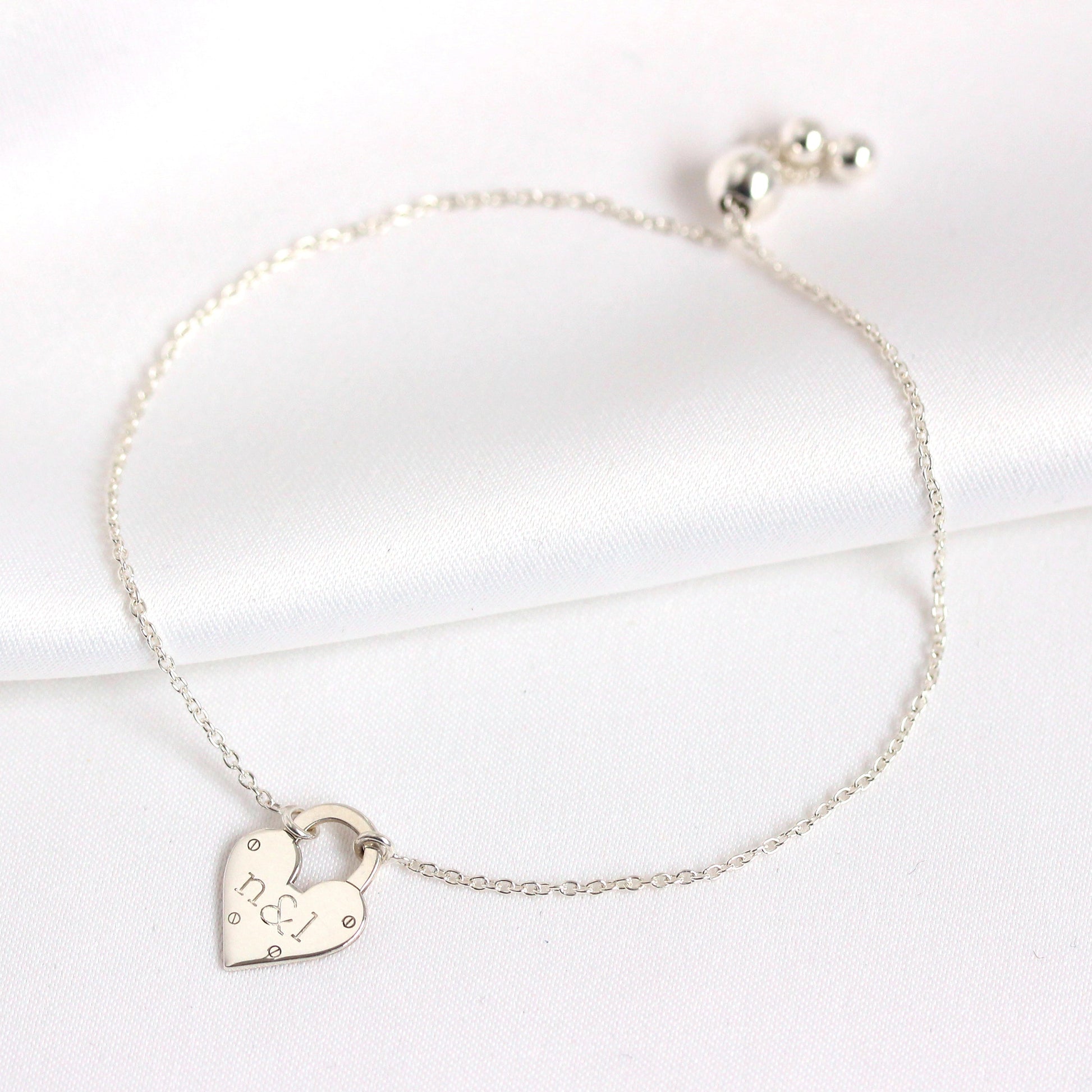 Bracelet ajustable sur mesure en argent sterling avec cadenas et initiales