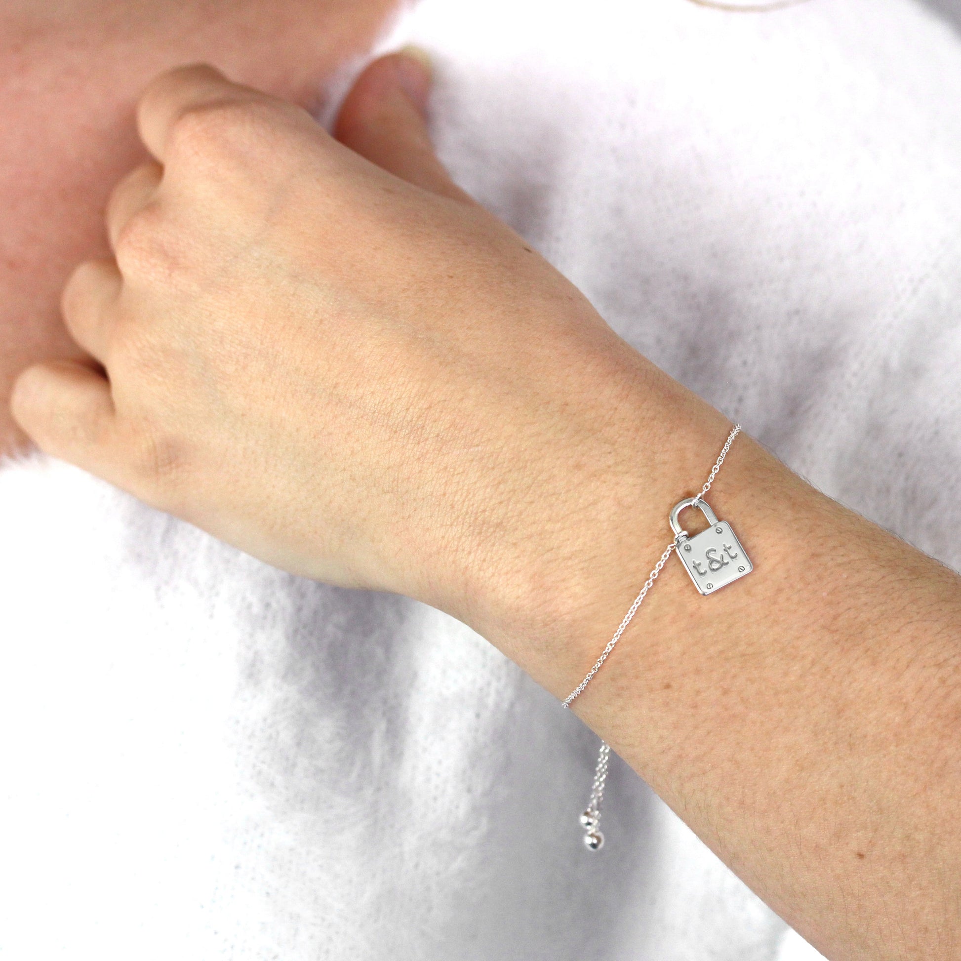 Bracelet sur mesure en argent sterling avec initiales et cadenas