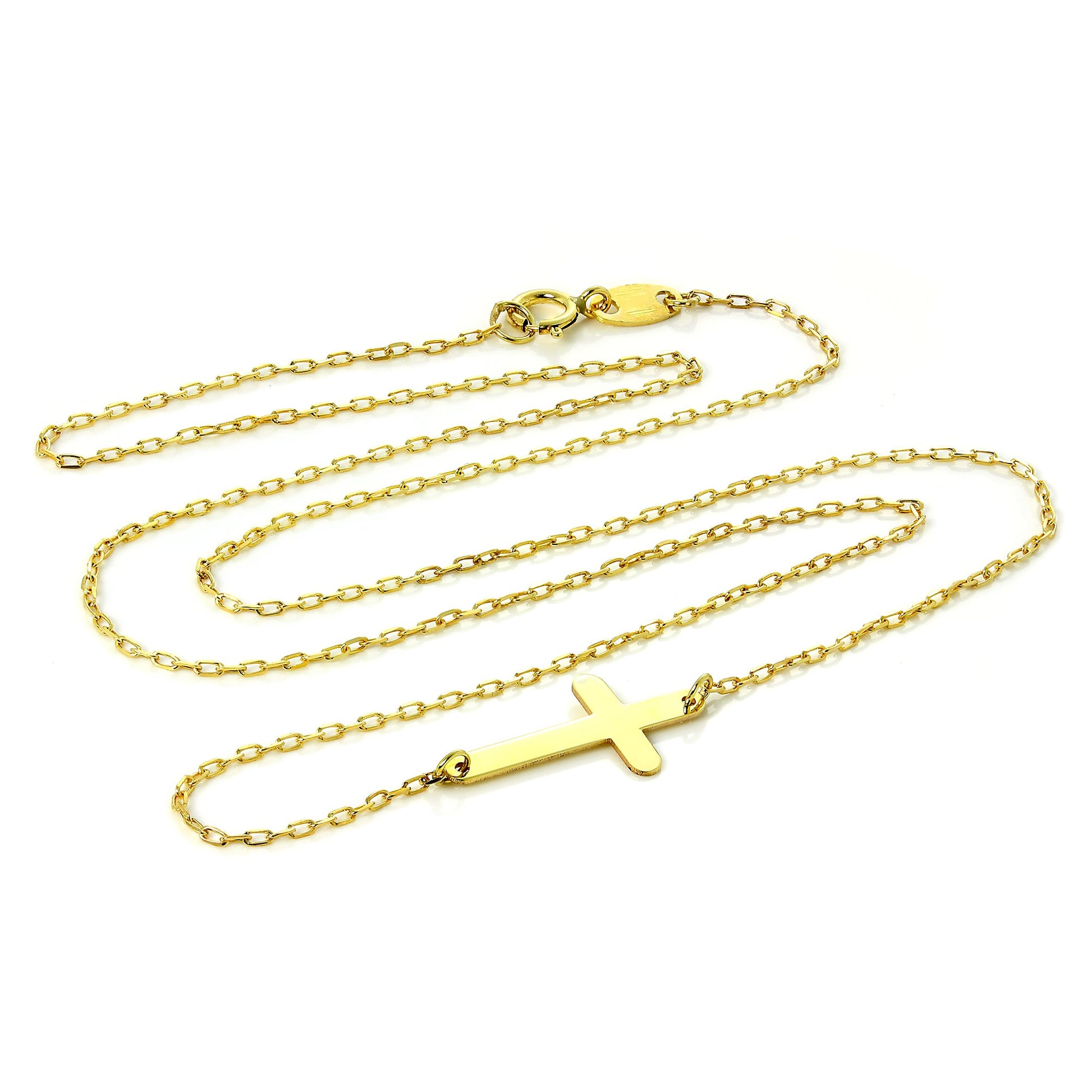 Collier chaîne fine en or 9 carats avec croix 40 cm