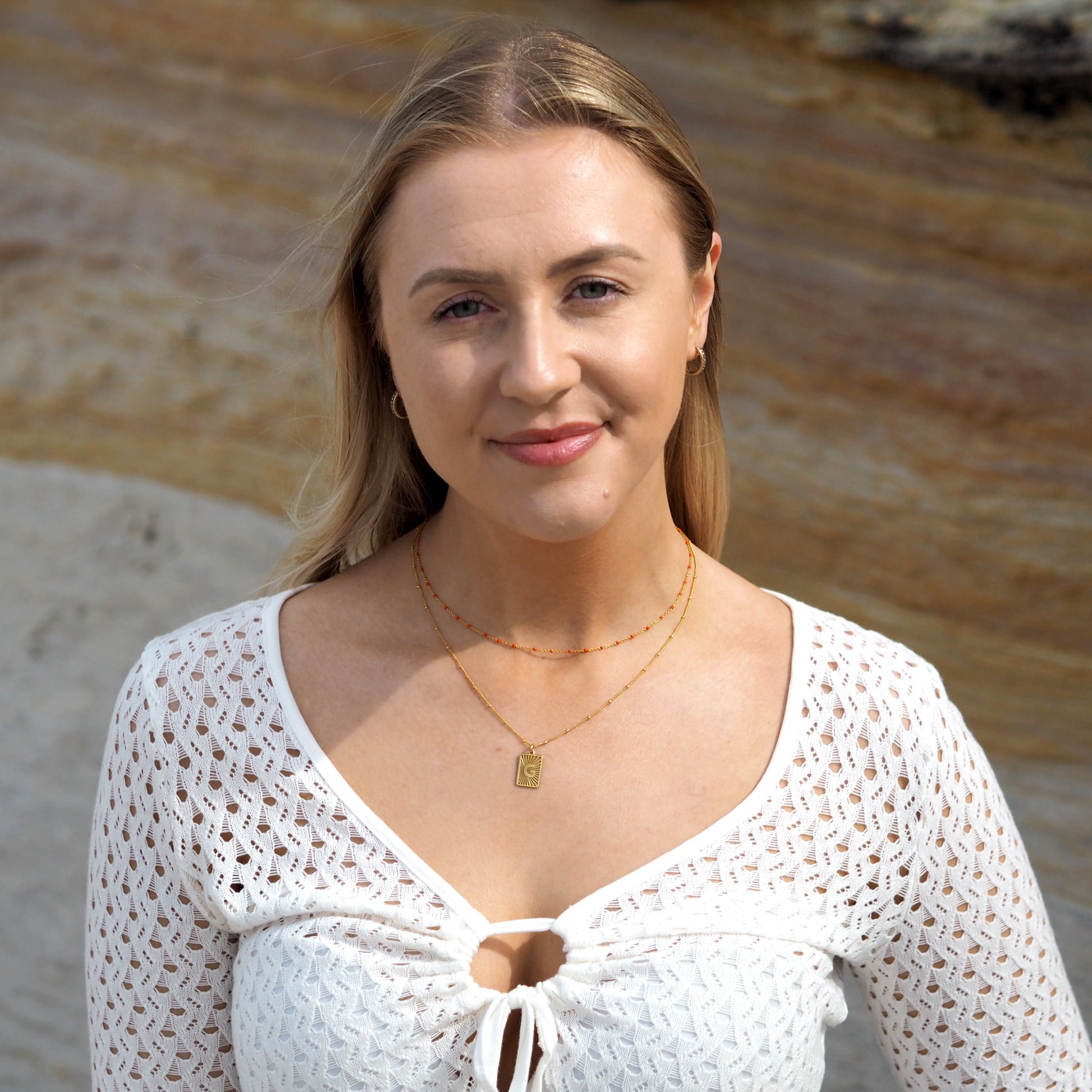 Fine Gold Plated Sterling Silver & Orange Enamel Confetti Chain Necklace - 16 Inches