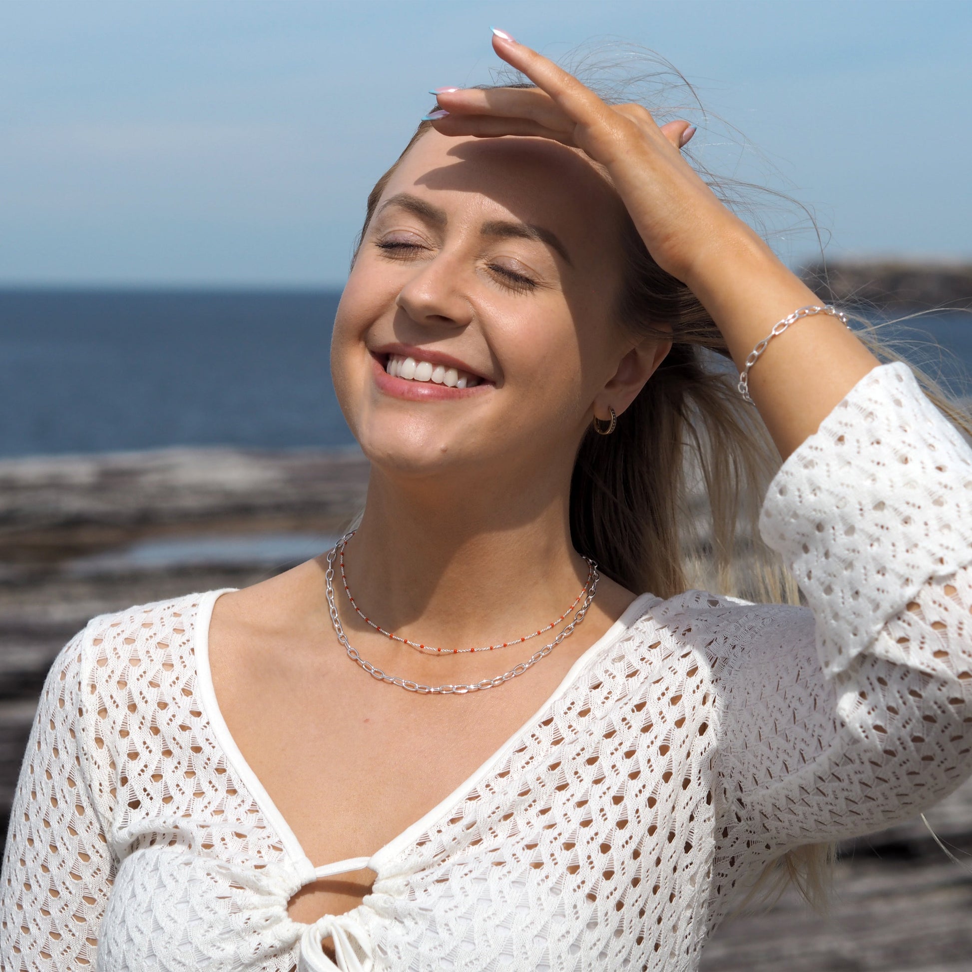 Fine Sterling Silver & Orange Enamel Confetti Chain Necklace - 16 Inches