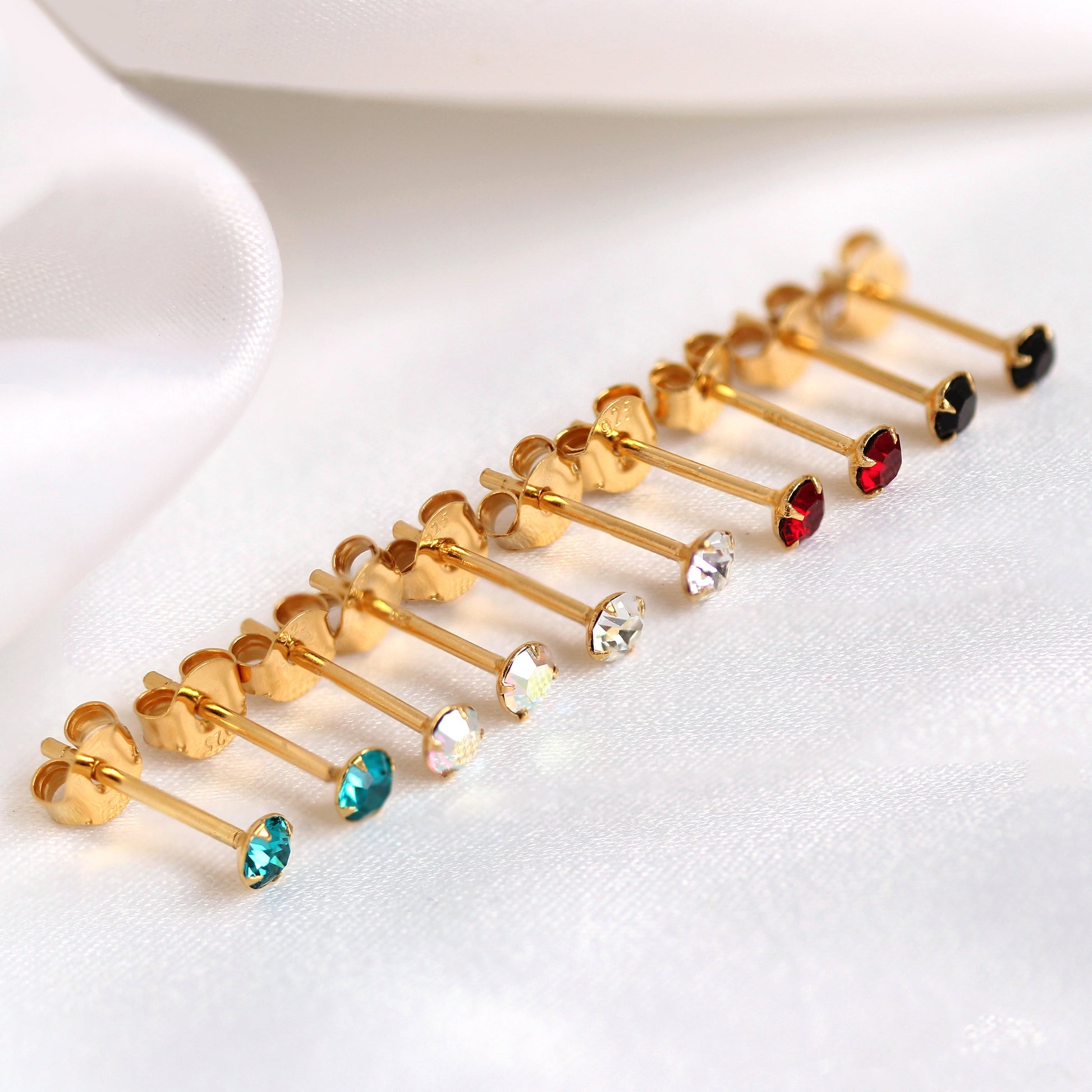 Boucles d'oreilles à tige en argent sterling plaqué or et zircones cubiques de 3 mm