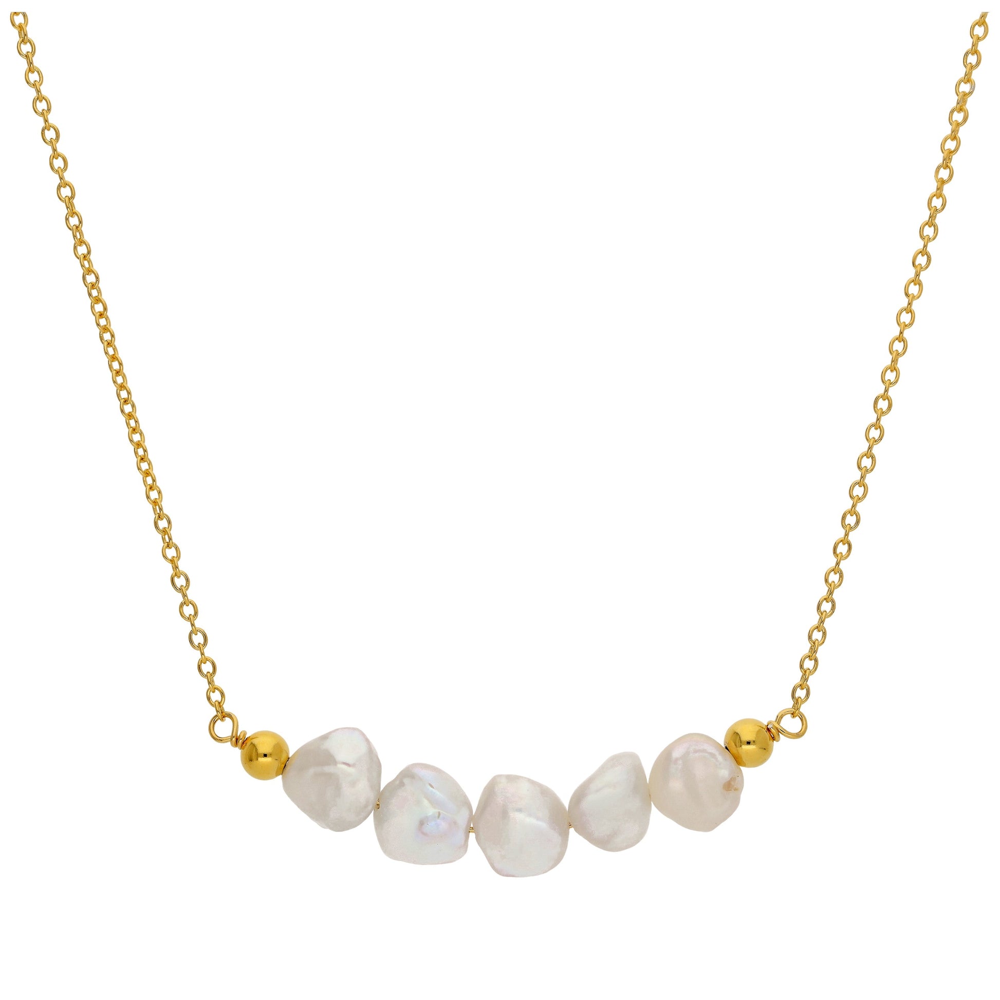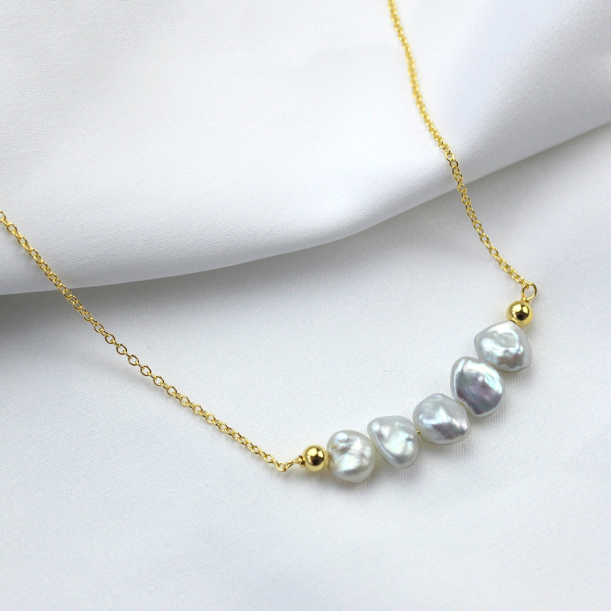 Collier en argent sterling plaqué or avec 5 perles d'eau douce baroques 50,8 cm + 5 cm