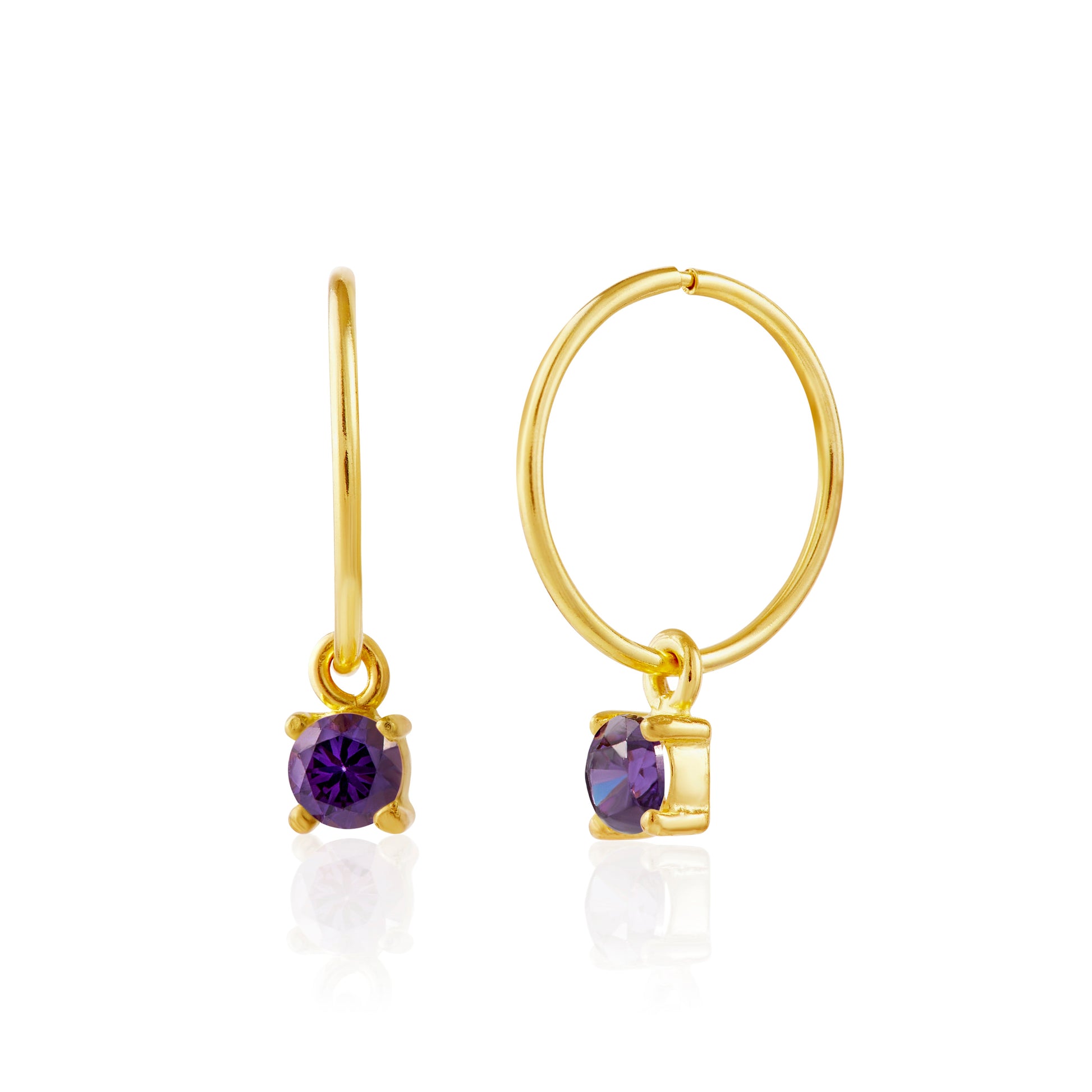 Boucles d'oreilles créoles en argent sterling plaqué or avec améthyste et zircone cubique de 12 mm