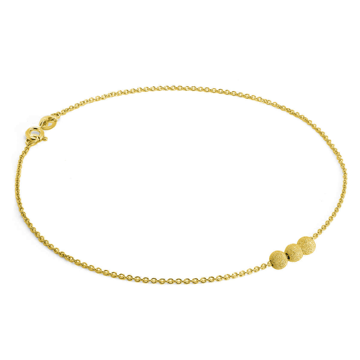 Bracelet de cheville en argent sterling plaqué or avec 3 perles givrées