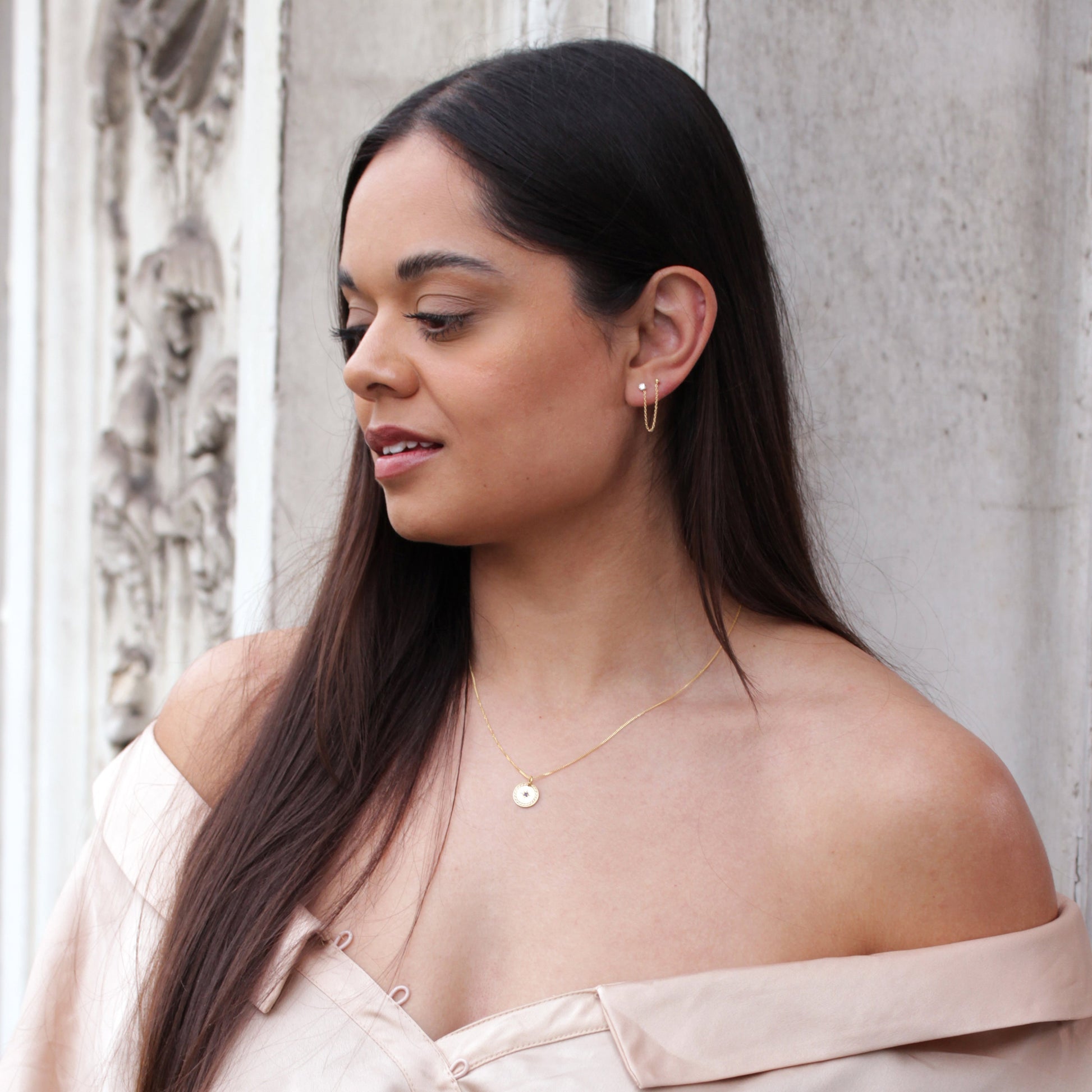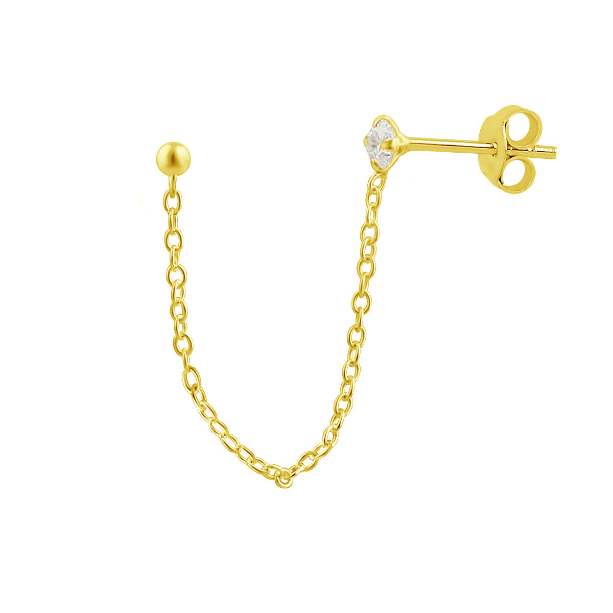 Boucles d'oreilles à double tige en argent sterling plaqué or avec boule en zircone cubique