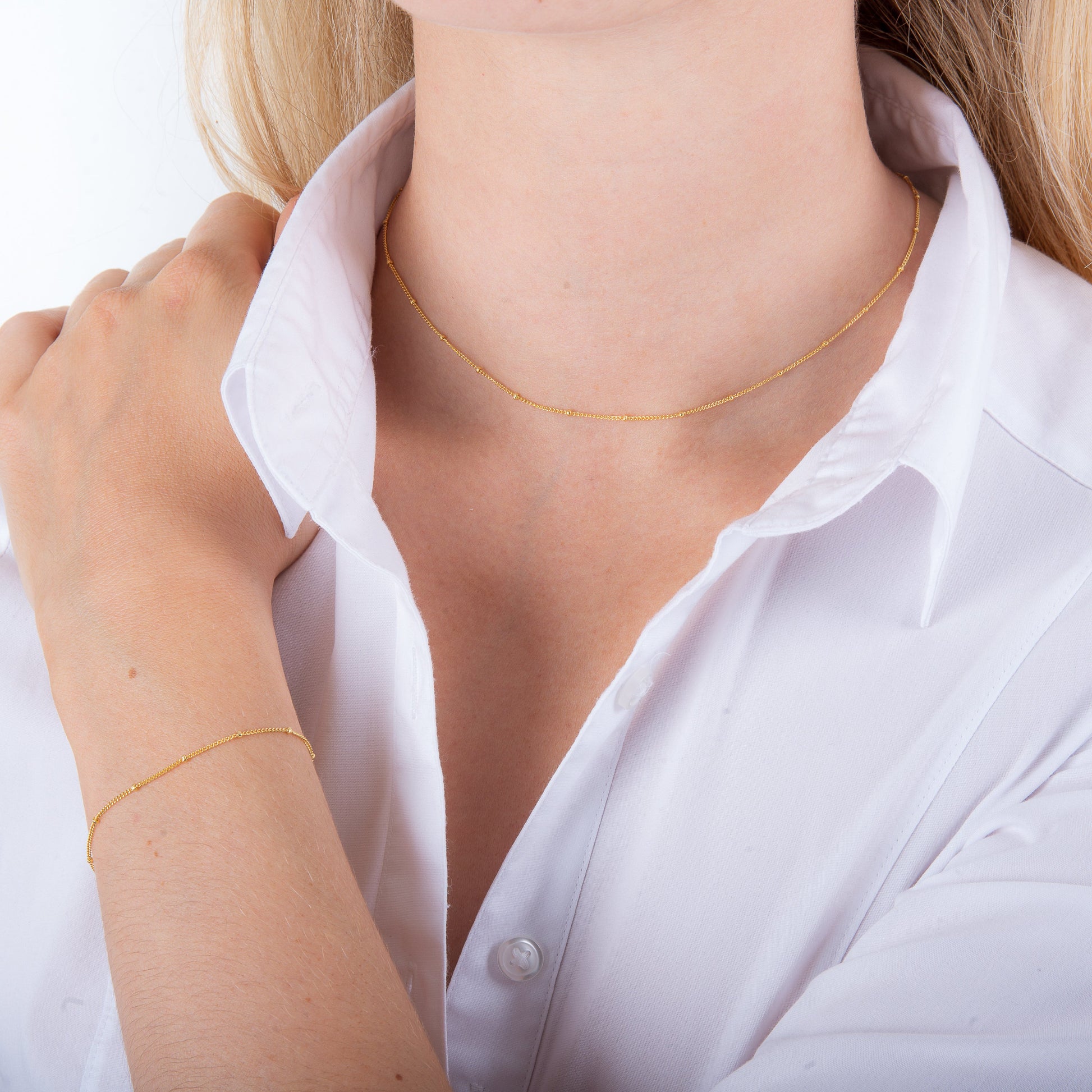 Bracelet gourmette en argent sterling plaqué or avec perles taillées en diamant