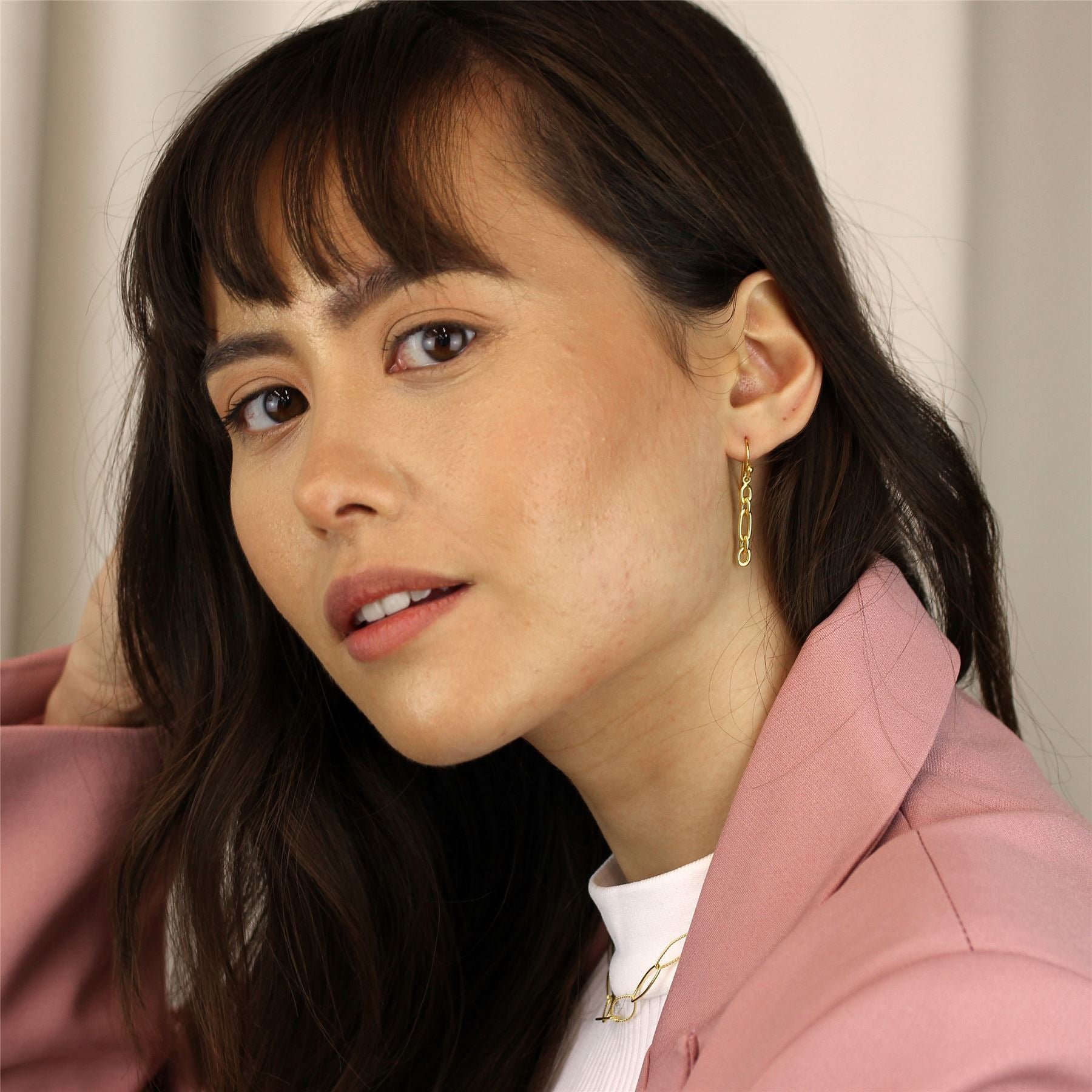 Boucles d'oreilles pendantes en argent sterling plaqué or avec chaîne torsadée