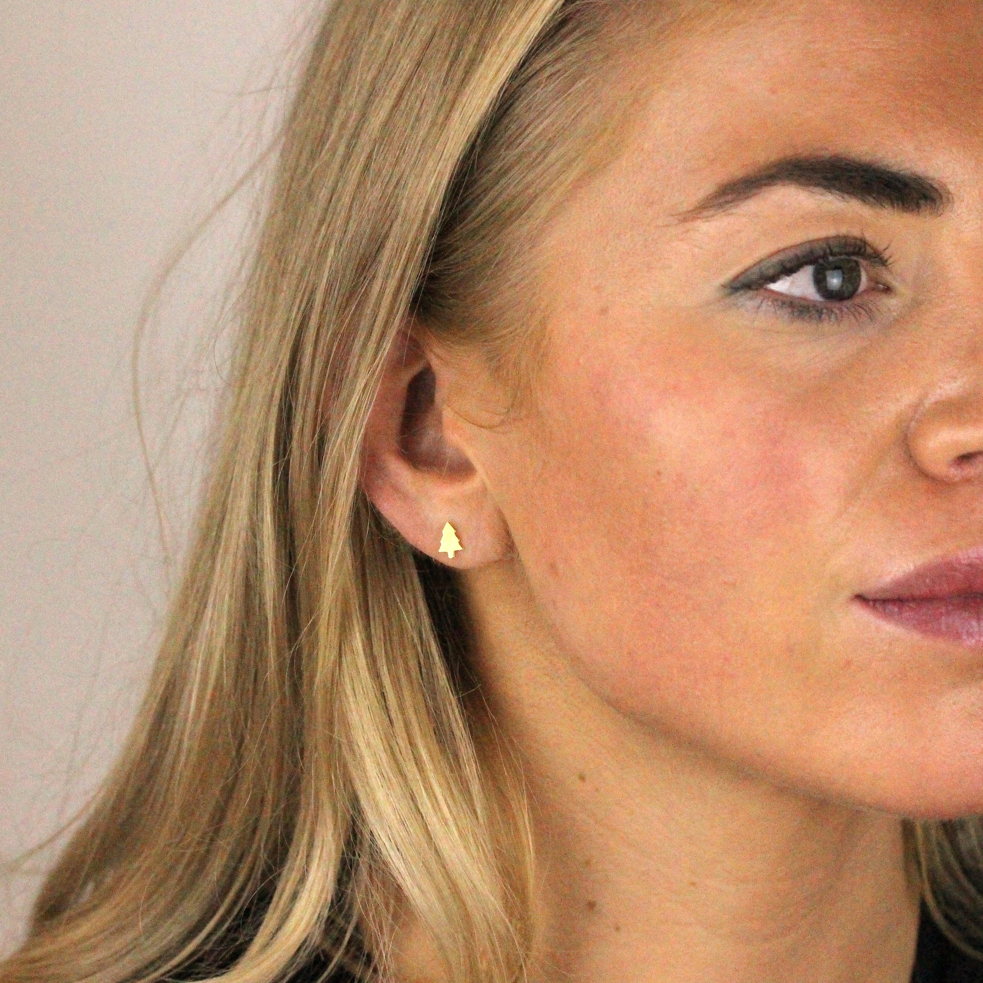 Boucles d'oreilles à tige en argent sterling plaqué or en forme de sapin de Noël