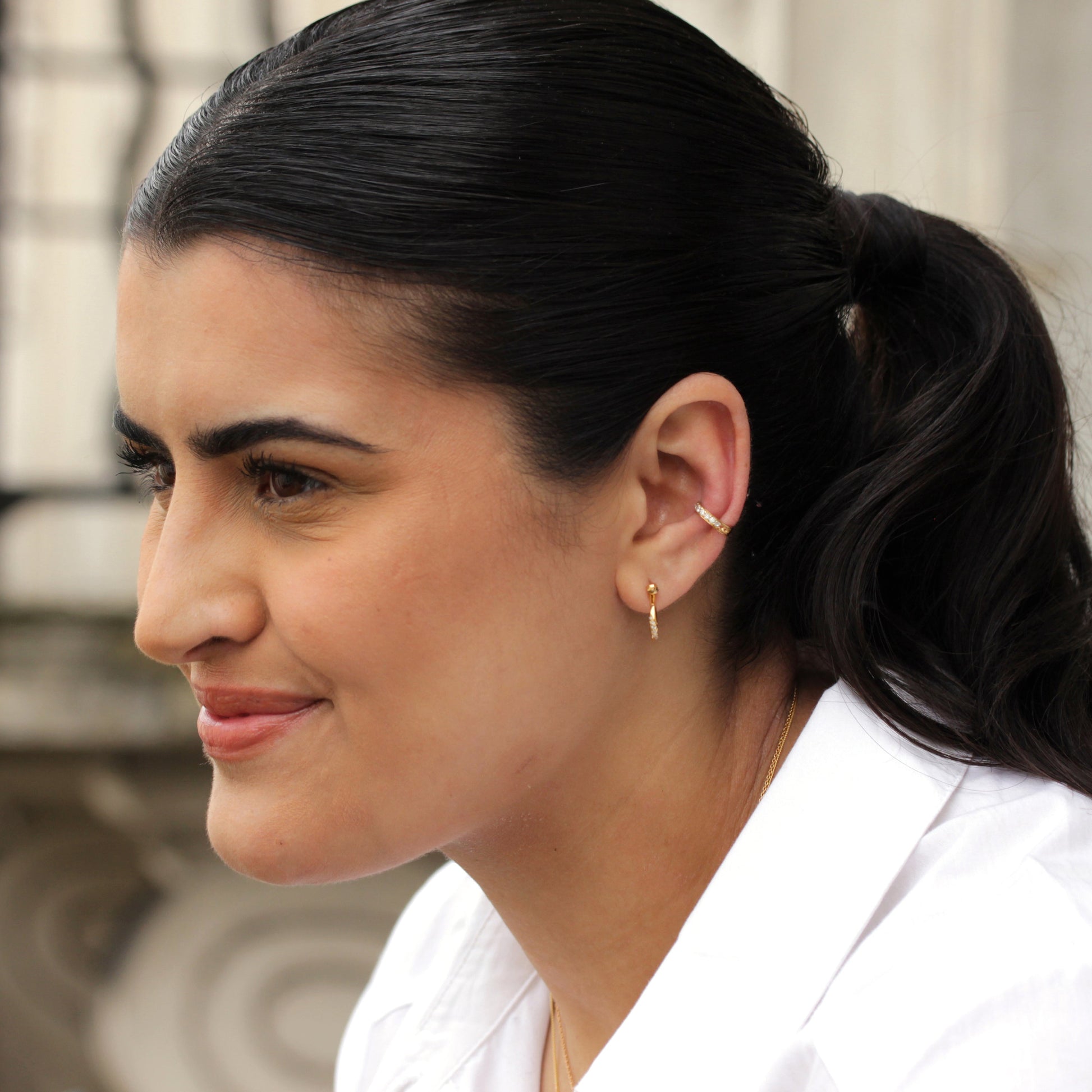 Manchette d'oreille en argent sterling plaqué or avec pavé de zircones cubiques transparents