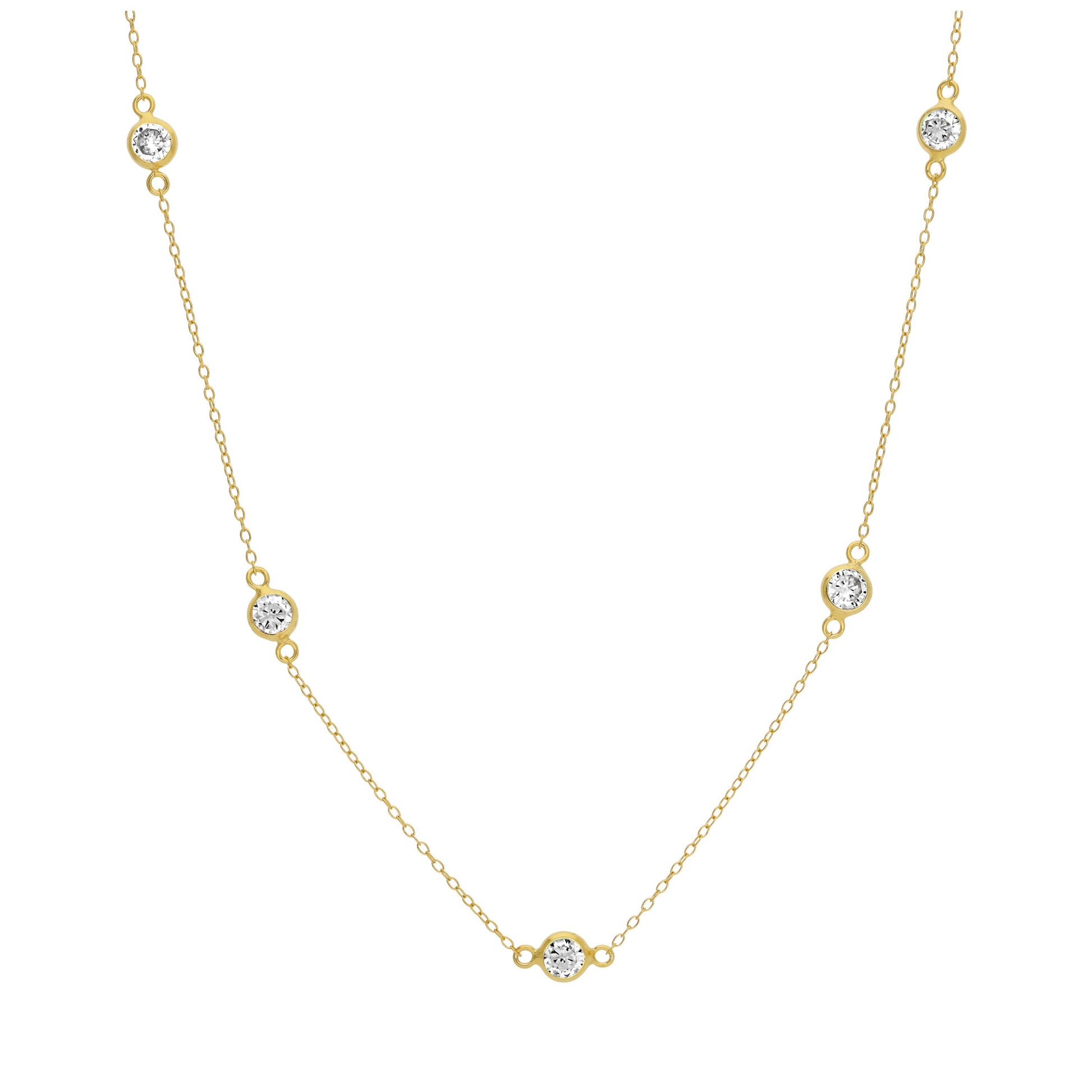 Collier en argent sterling plaqué or avec plusieurs zircones cubiques transparents et pierre de naissance d'avril