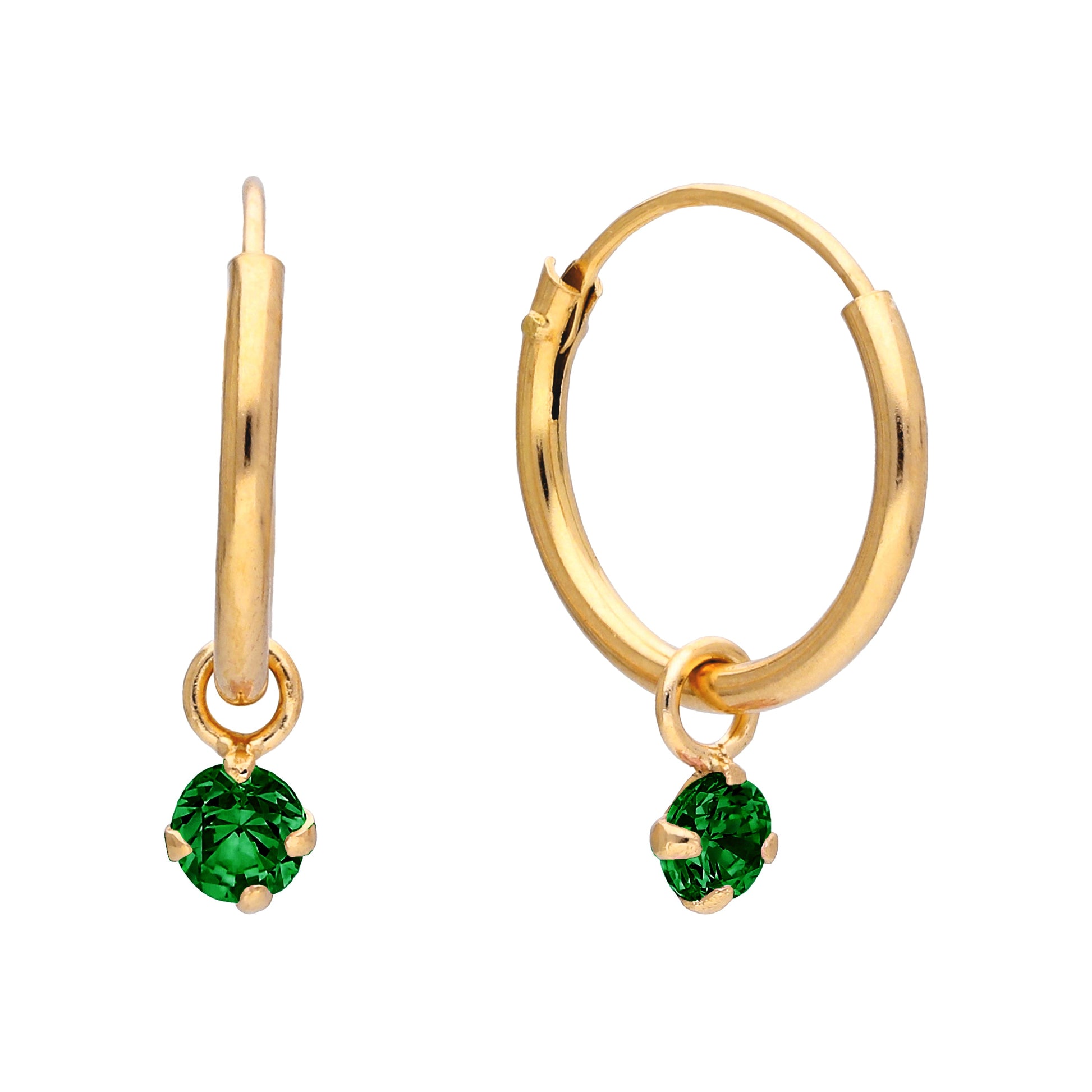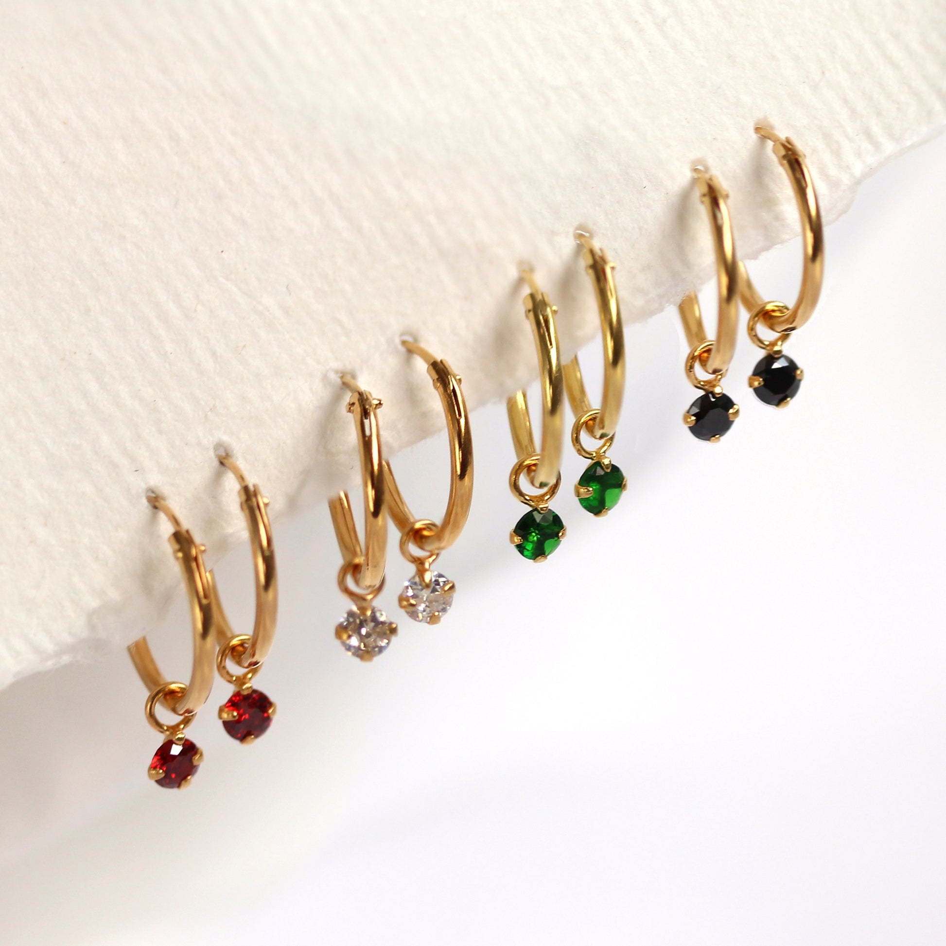 Boucles d'oreilles créoles en argent sterling plaqué or et cristaux colorés