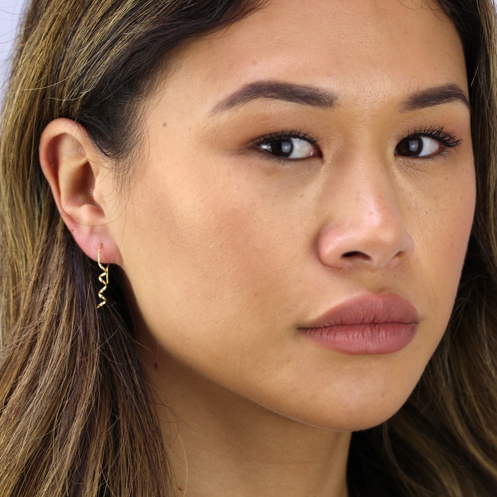 Boucles d'oreilles pendantes torsadées en argent sterling plaqué or avec tire-bouchon