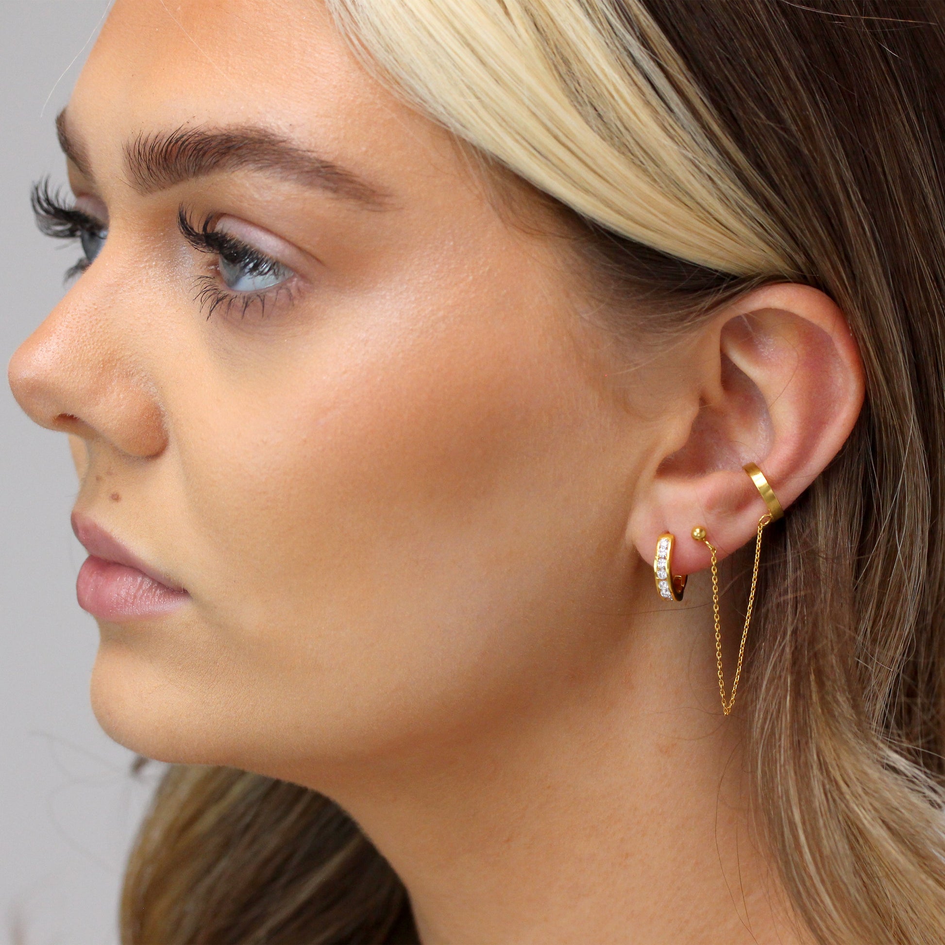 Boucles d'oreilles créoles 14 mm en argent sterling plaqué or serties de zircones cubiques