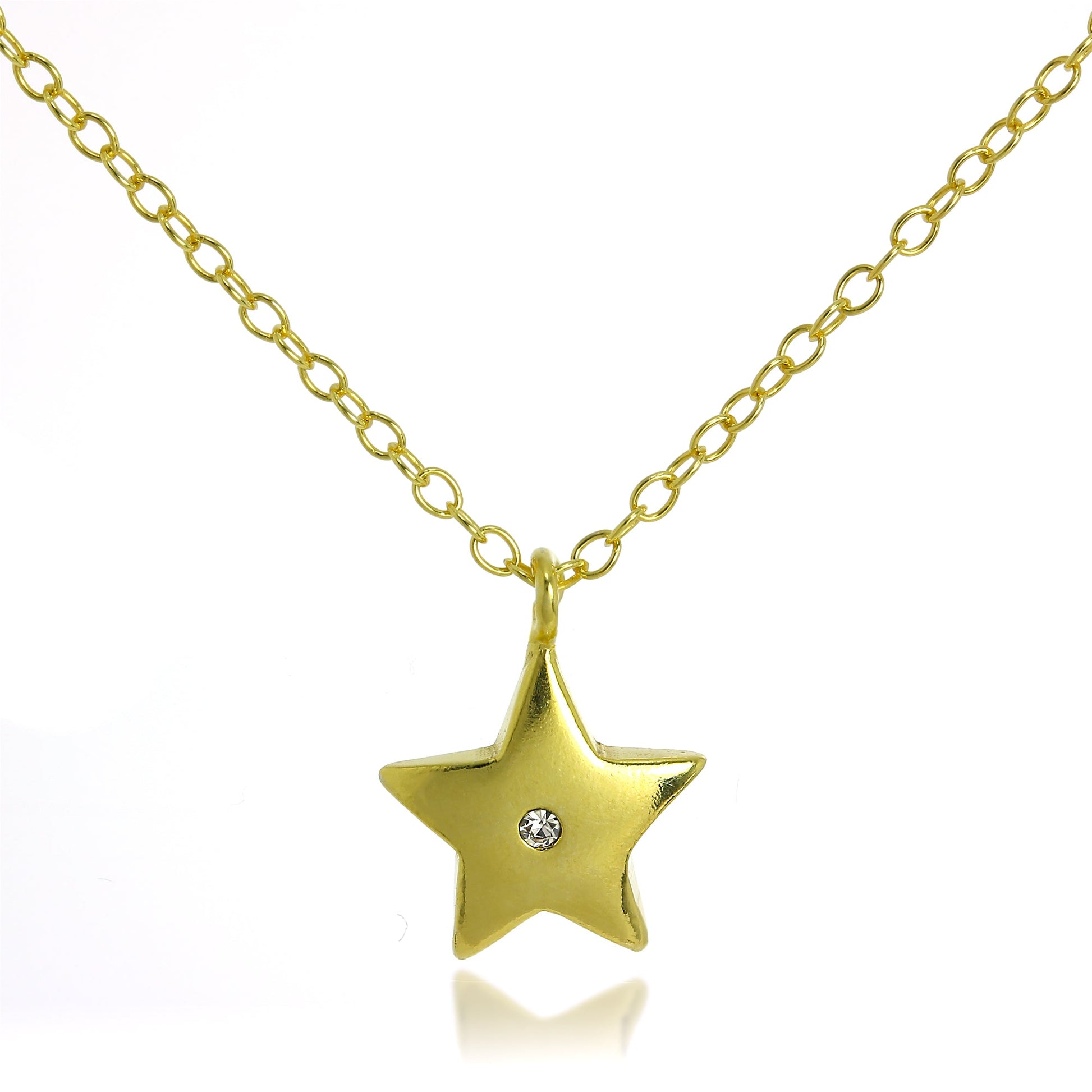 Collier avec pendentif étoile en argent sterling plaqué or et cristal CZ sur chaîne de 45 cm