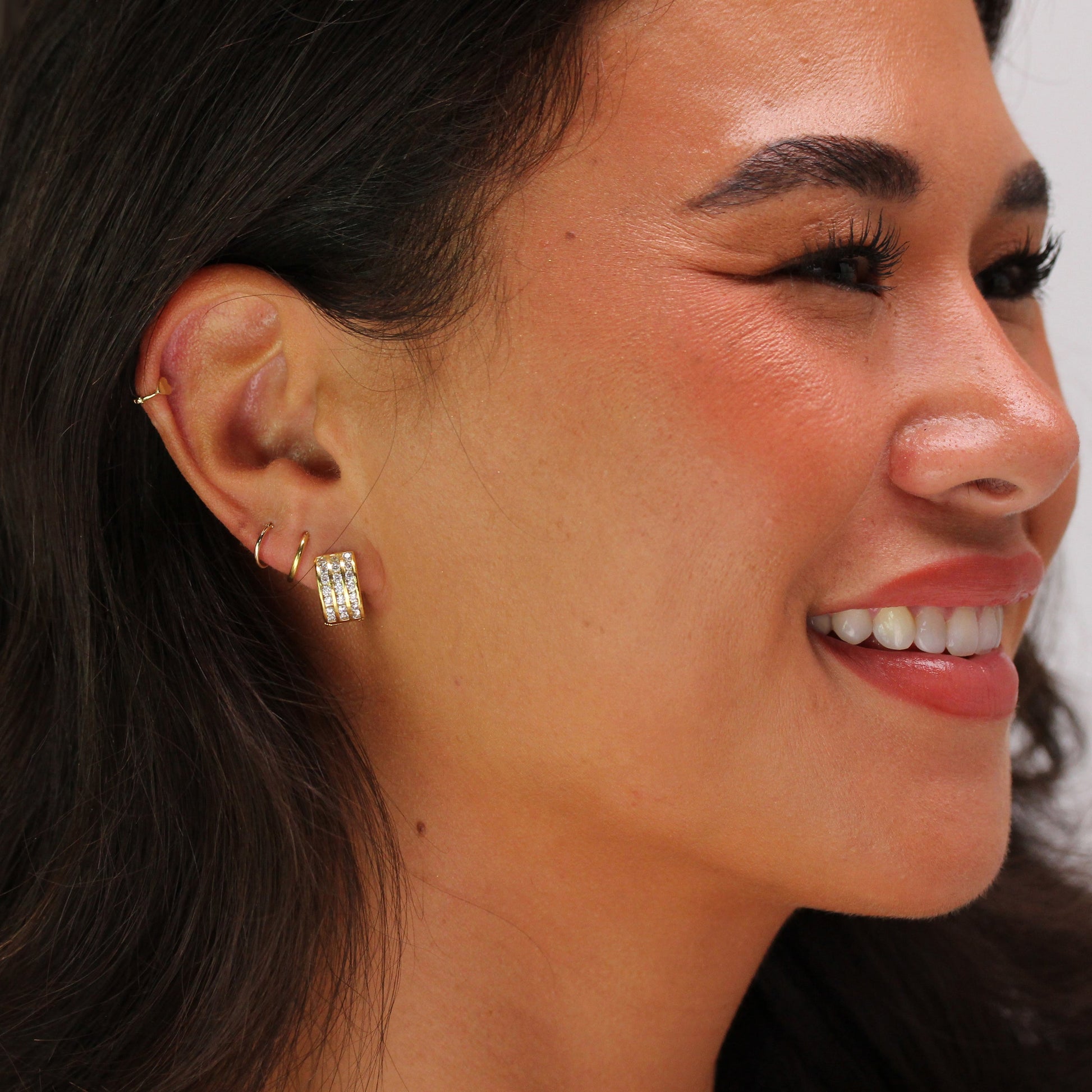 Boucles d'oreilles Huggie triples en argent sterling plaqué or et zircones cubiques