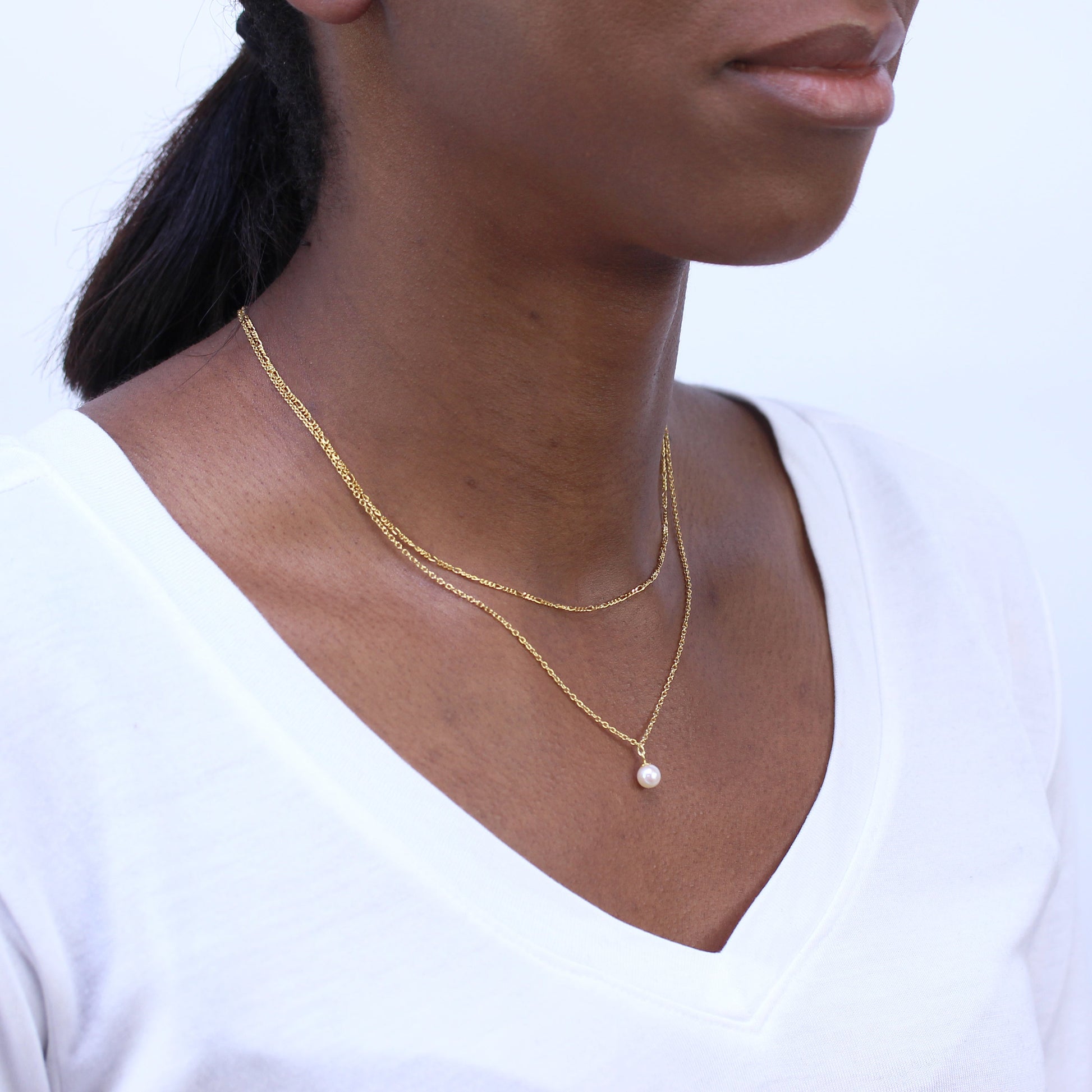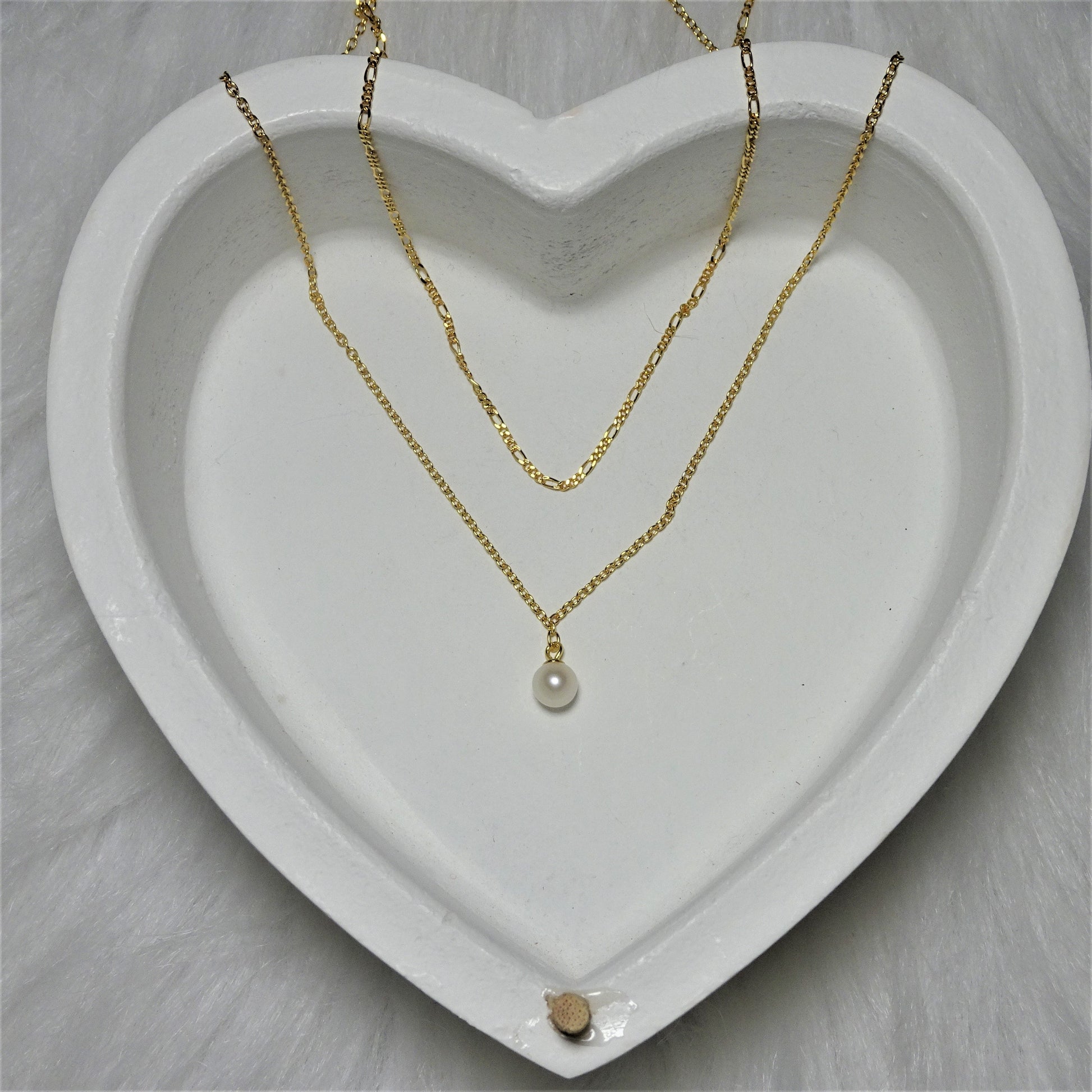 Collier de perles à double chaîne en argent sterling plaqué or 16 et 18 pouces