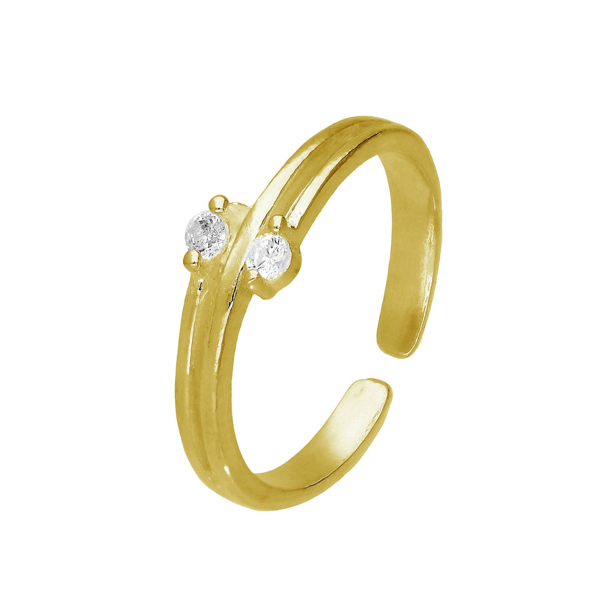 Bague d'orteil réglable en argent sterling plaqué or et double zircone cubique