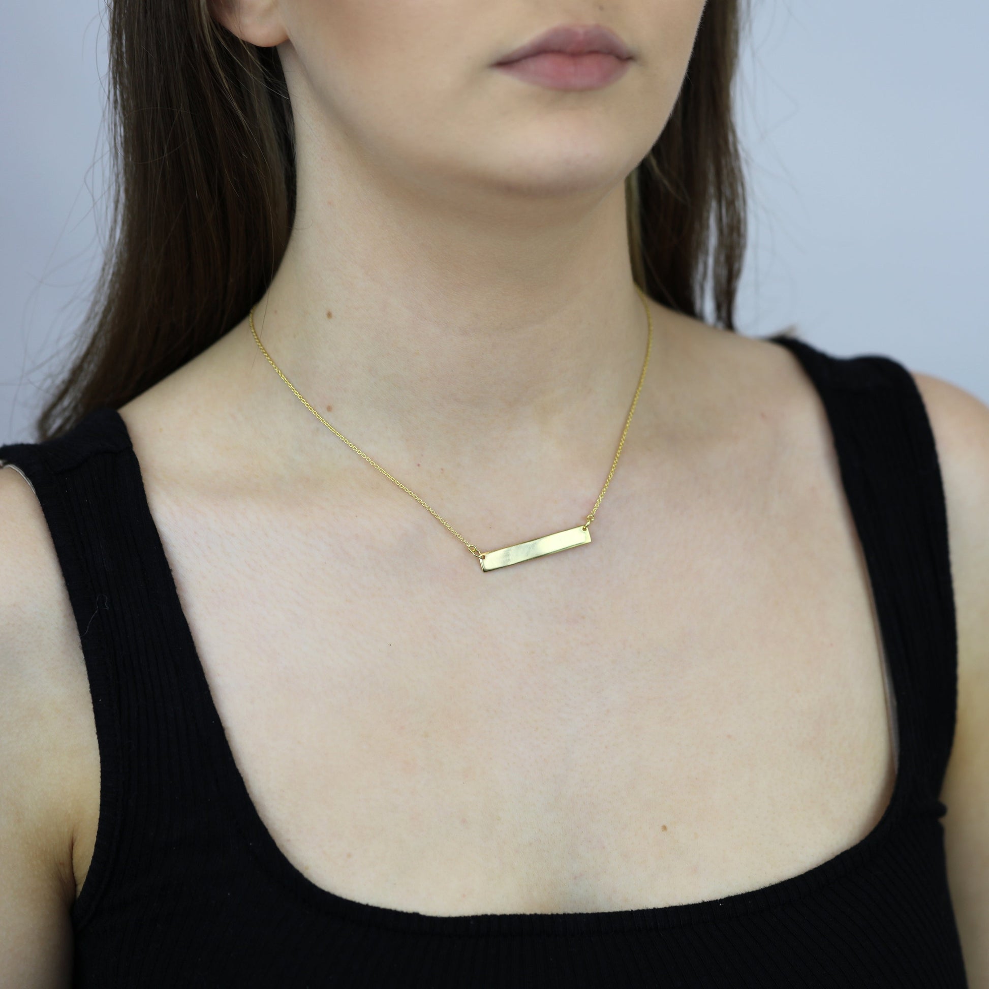 Collier en argent sterling plaqué or avec barre gravable de 40,6 cm