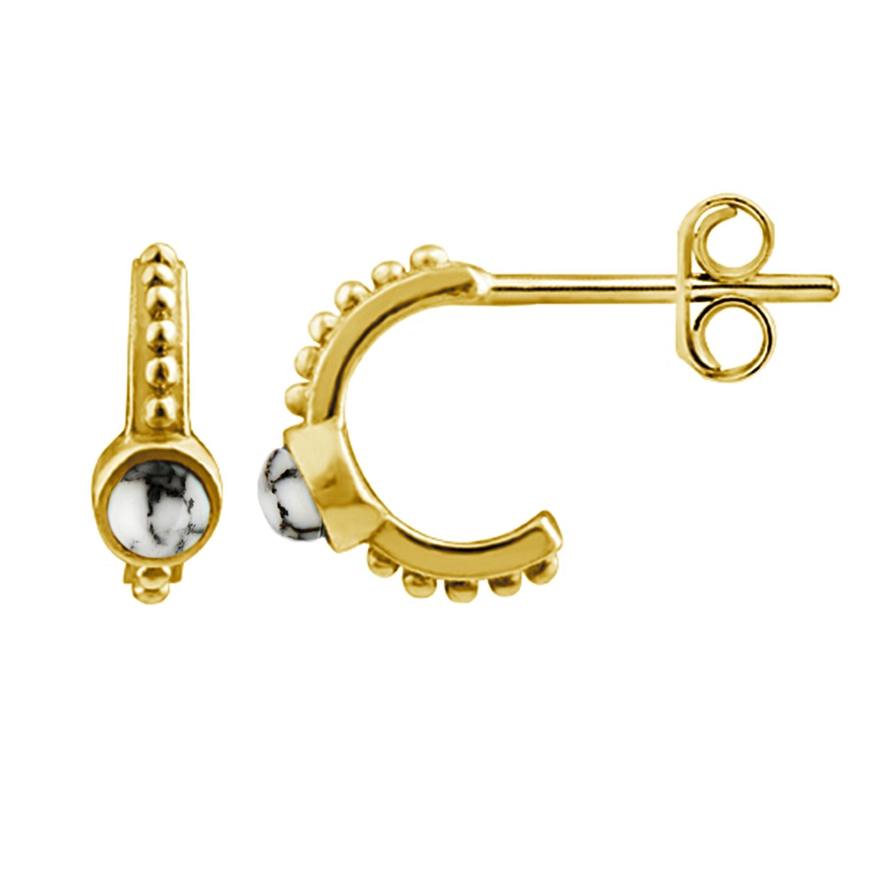 Boucles d'oreilles créoles en argent sterling plaqué or avec imitation howlite