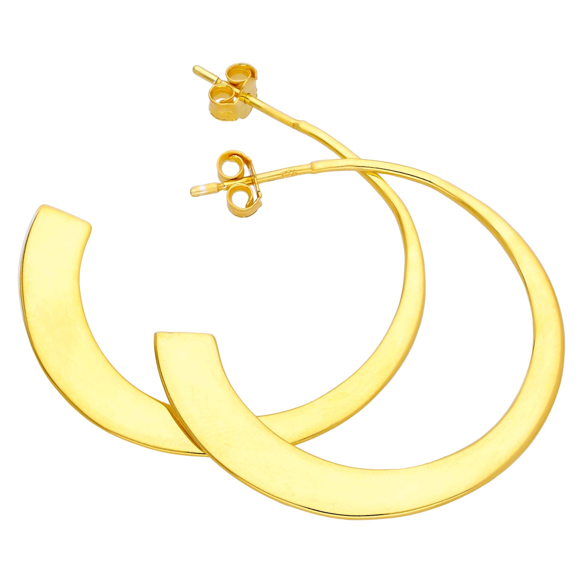Boucles d'oreilles créoles ouvertes plates et coniques en argent sterling plaqué or
