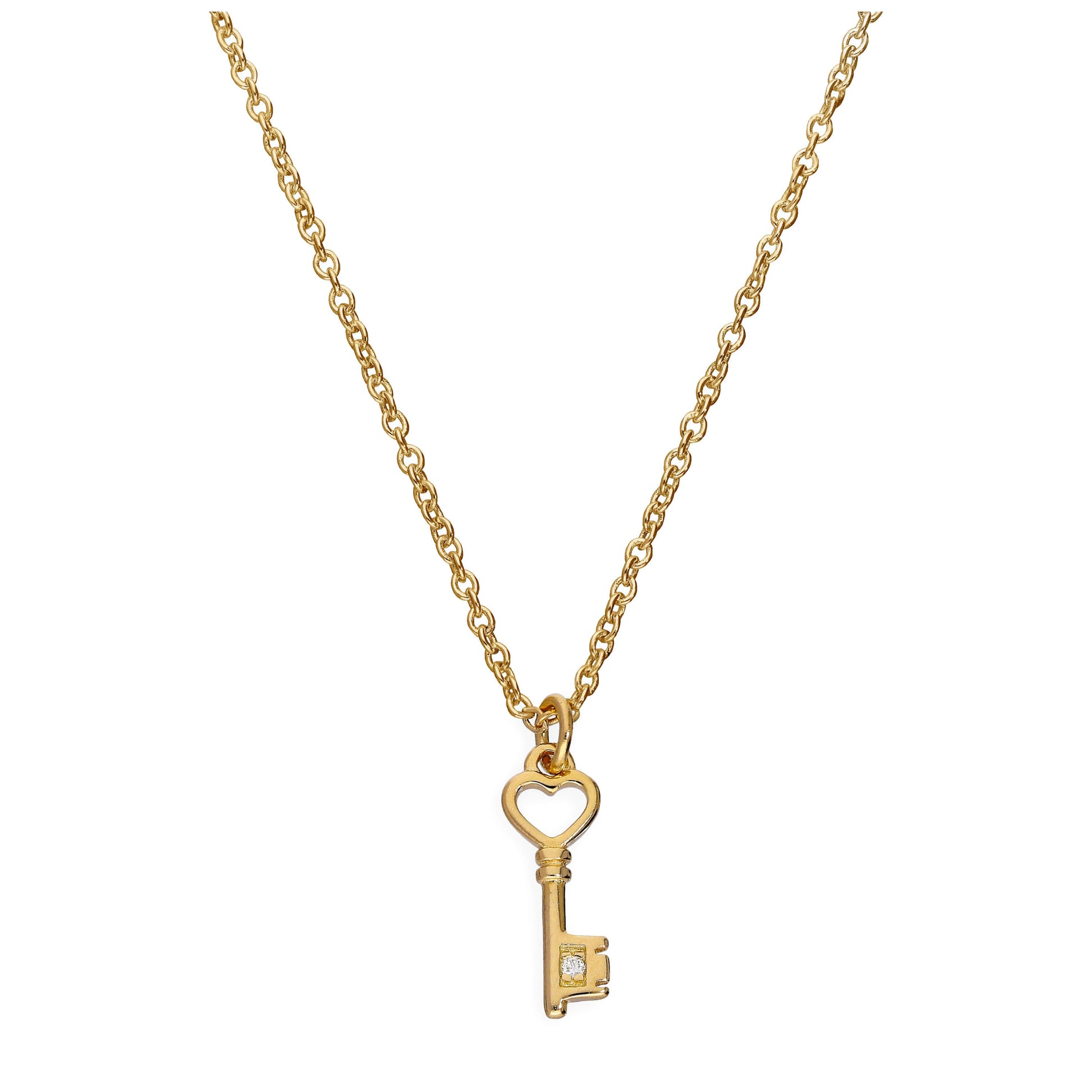 Collier en argent sterling plaqué or et véritable diamant, 45 cm, avec clé en forme de cœur