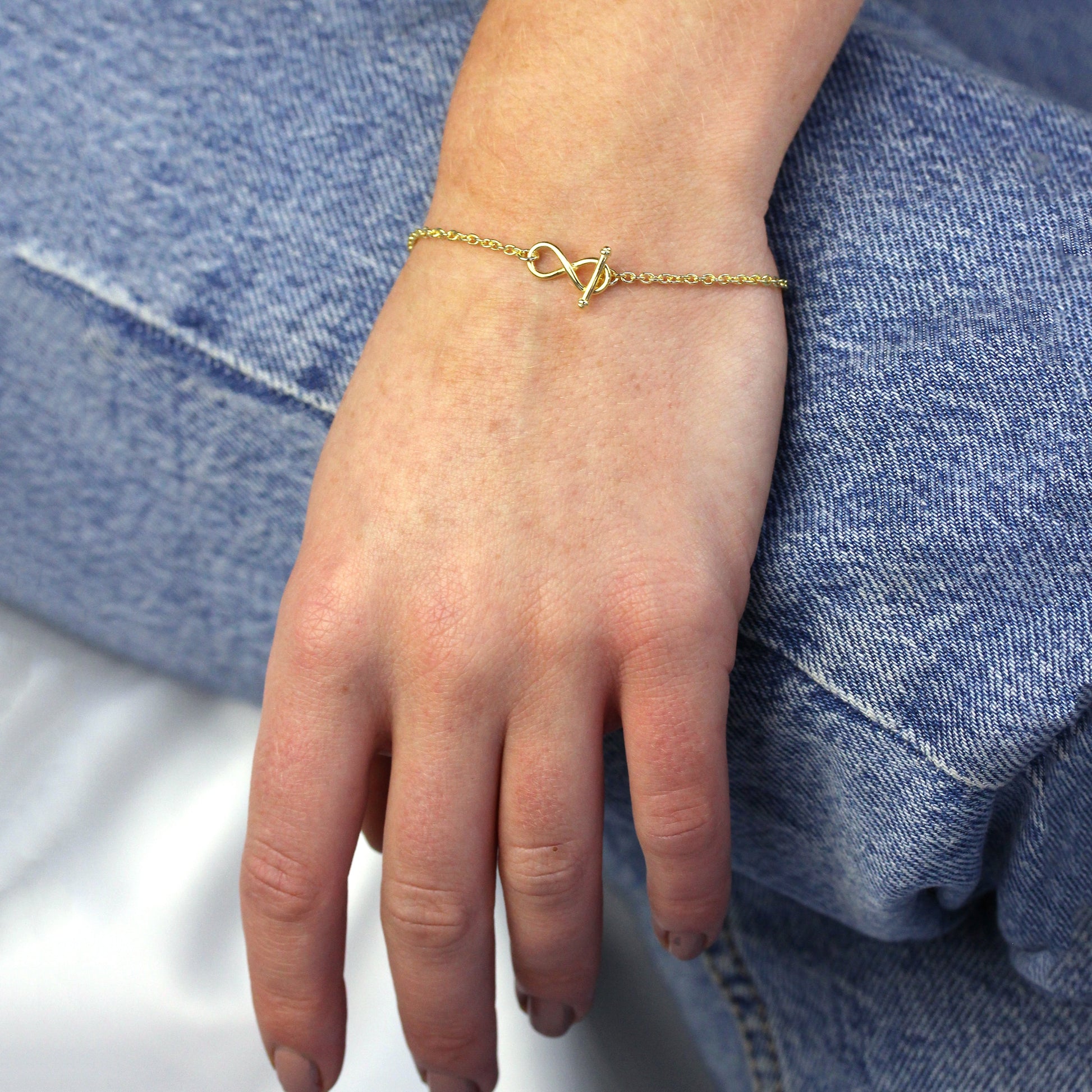 Bracelet en argent sterling plaqué or avec barre en T infini de 18 cm