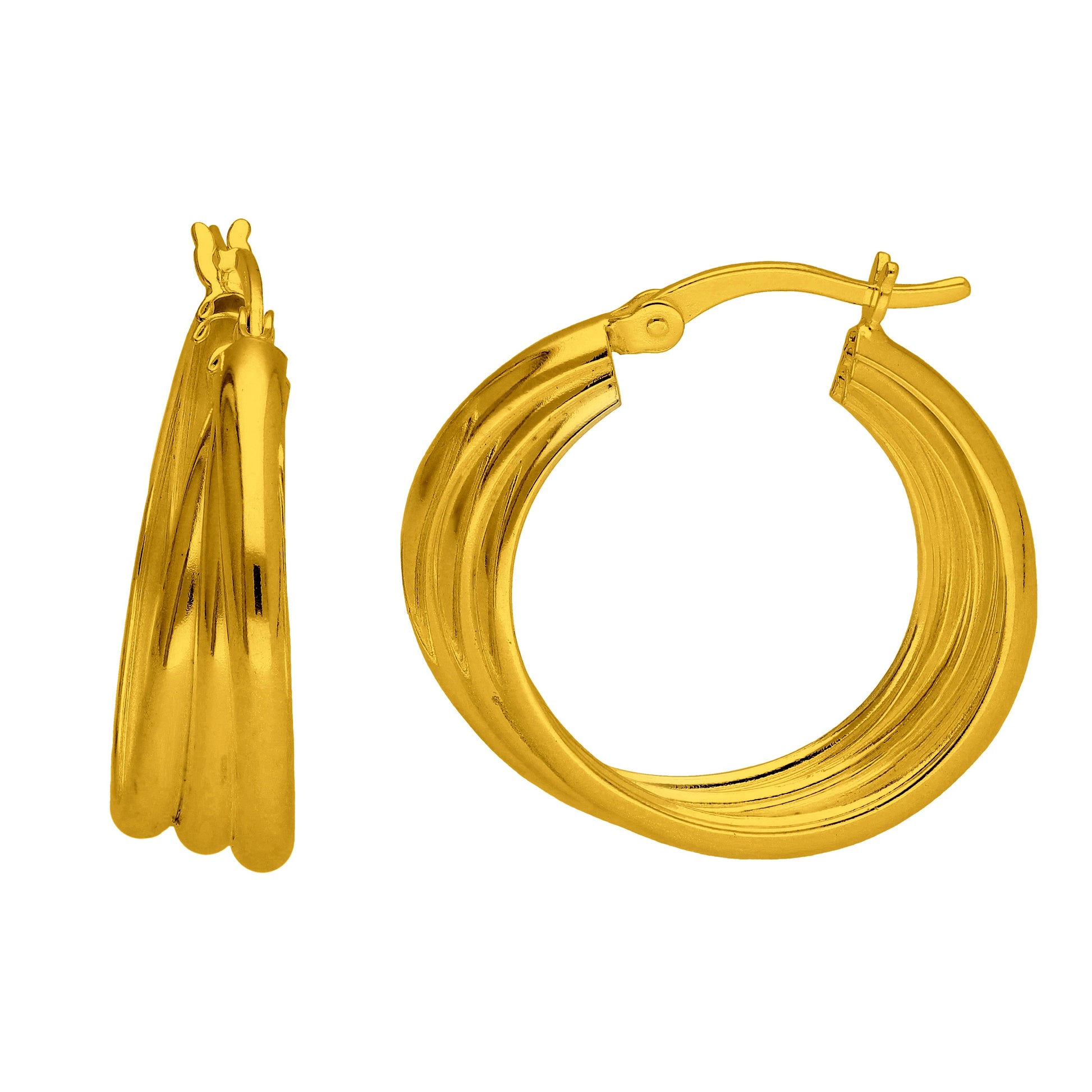 Boucles d'oreilles créoles en argent sterling plaqué or avec triple torsion ronde et corde entrelacée